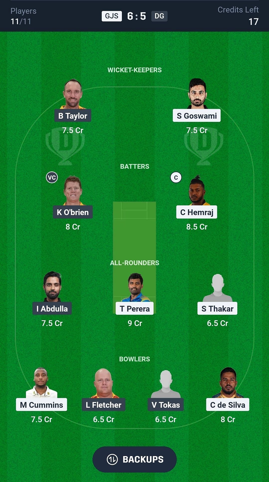 Gujarat Samp Army vs Dubai Giants Dream11 Prediction Today, Grand League