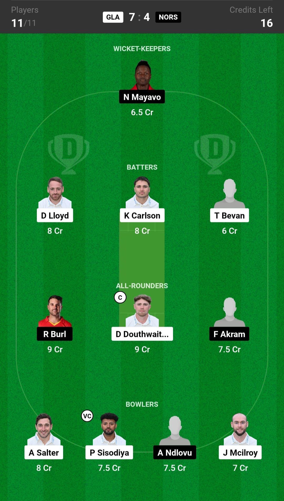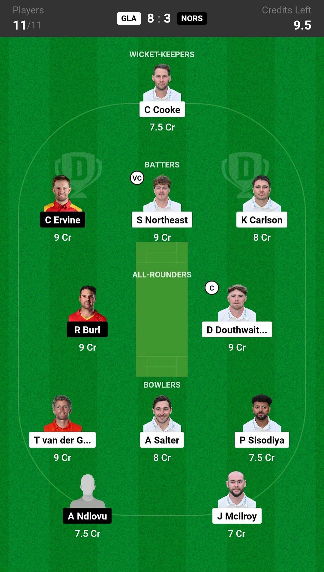 R Burl and D Douthwaite are the best all-rounder picks for the Dream11 team as they are batting in the top order and also completing their quota of overs. W Madhevere is another good pick for today's Dream11 team.
