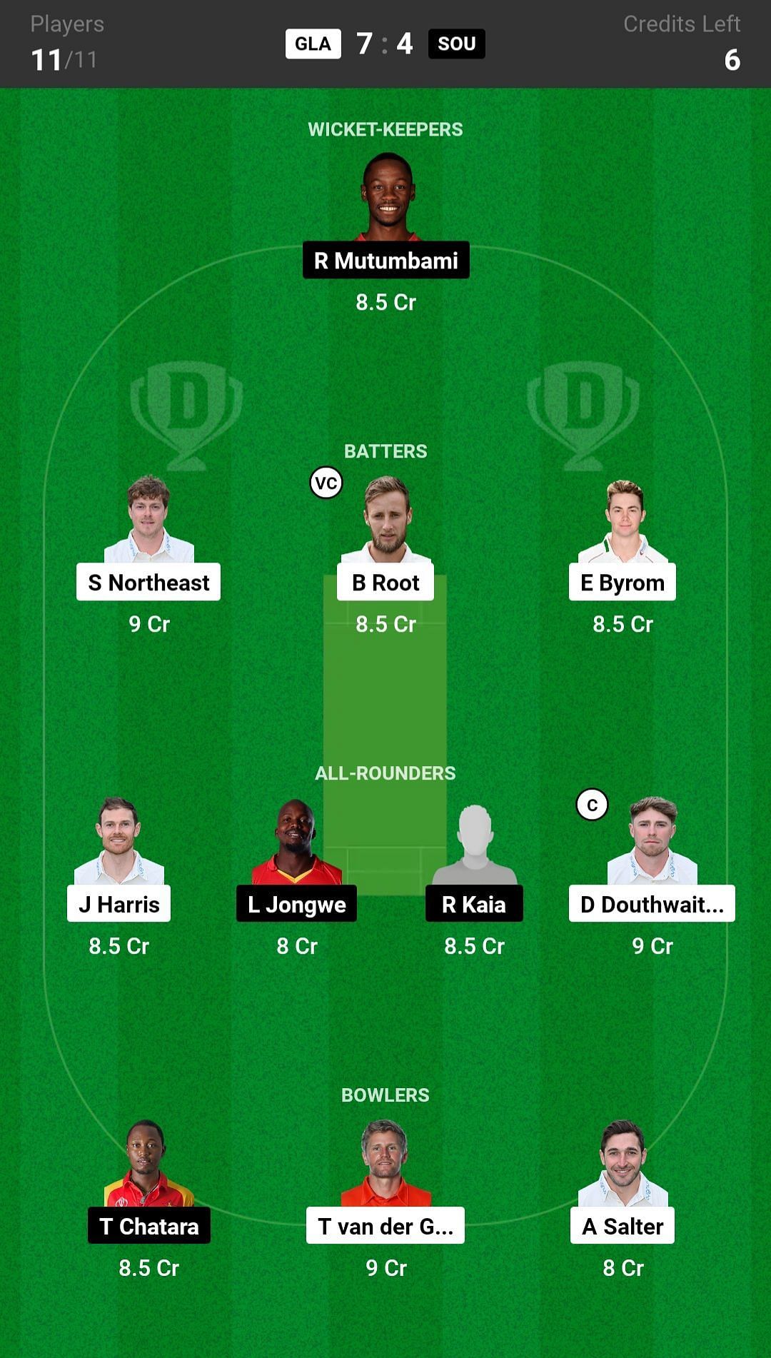 J Harris and D Douthwaite are the best all-rounder picks for the Dream11 team as they are batting in the top order and also completing their quota of overs. R Kaia is another good pick for today's Dream11 team.