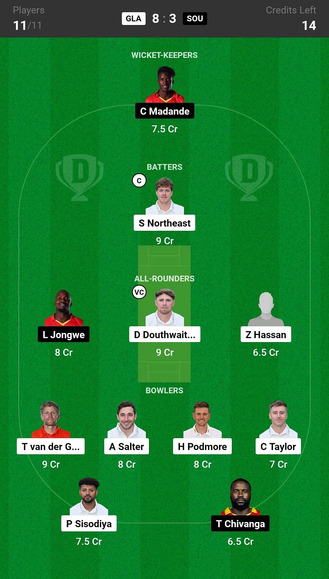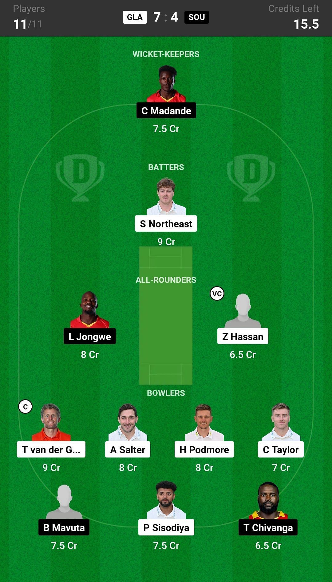 Z Hassan and D Douthwaite are the best all-rounder picks for the Dream11 team as they are batting in the top order and also completing their quota of overs. L Jongwe is another good pick for today's Dream11 team.