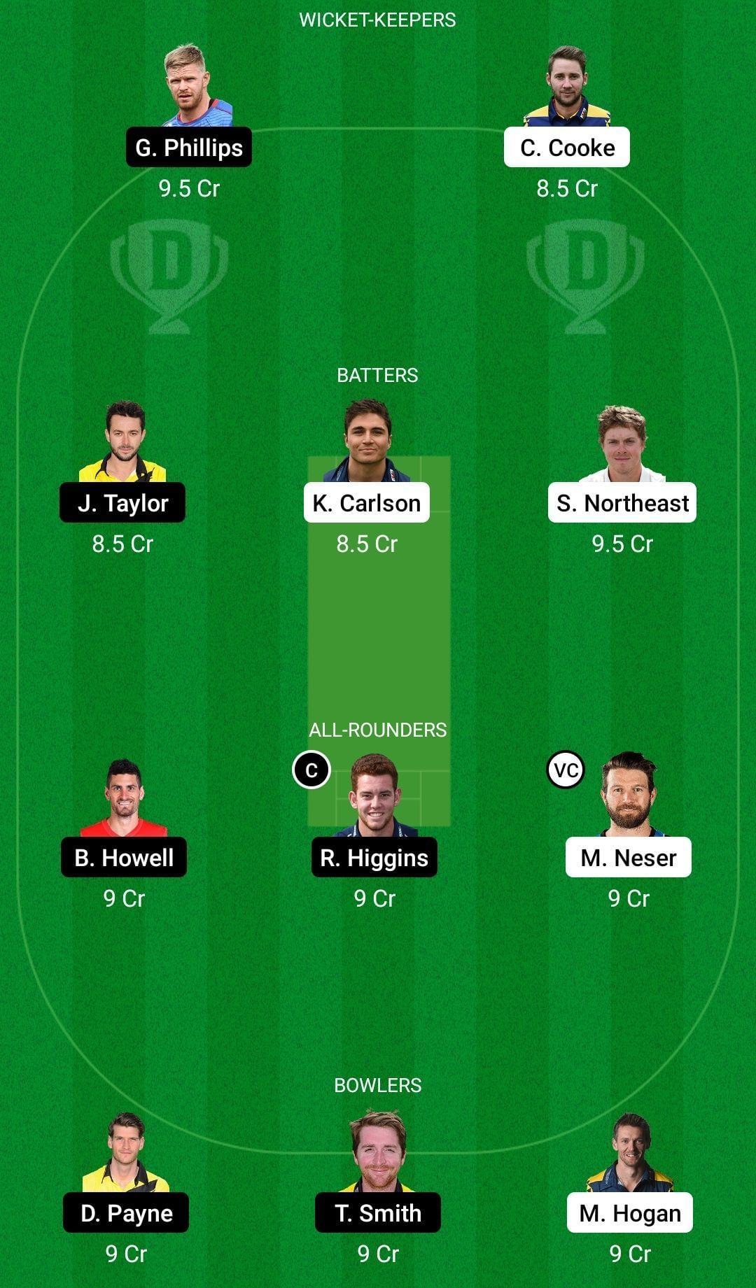 Fantasy Suggestion #2: Glenn Phillips, Jack Taylor, Kiran Carlson, Sam Northeast, Colin Ingram, Ryan Higgins, Michael Neser, David Payne, Tom Smith, Prem Sisodiya, Michael Hogan.