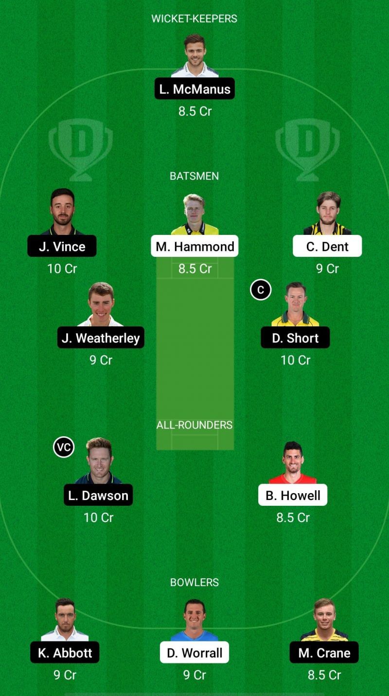 Fantasy Suggestion #1: Lewis McManus, Miles Hammond, Chris Dent, James Vince, D Arcy Short, Joe Weatherley, Benny Howell, Liam Dawson, Daniel Worrall, Kyle Abbott, Mason Crane.