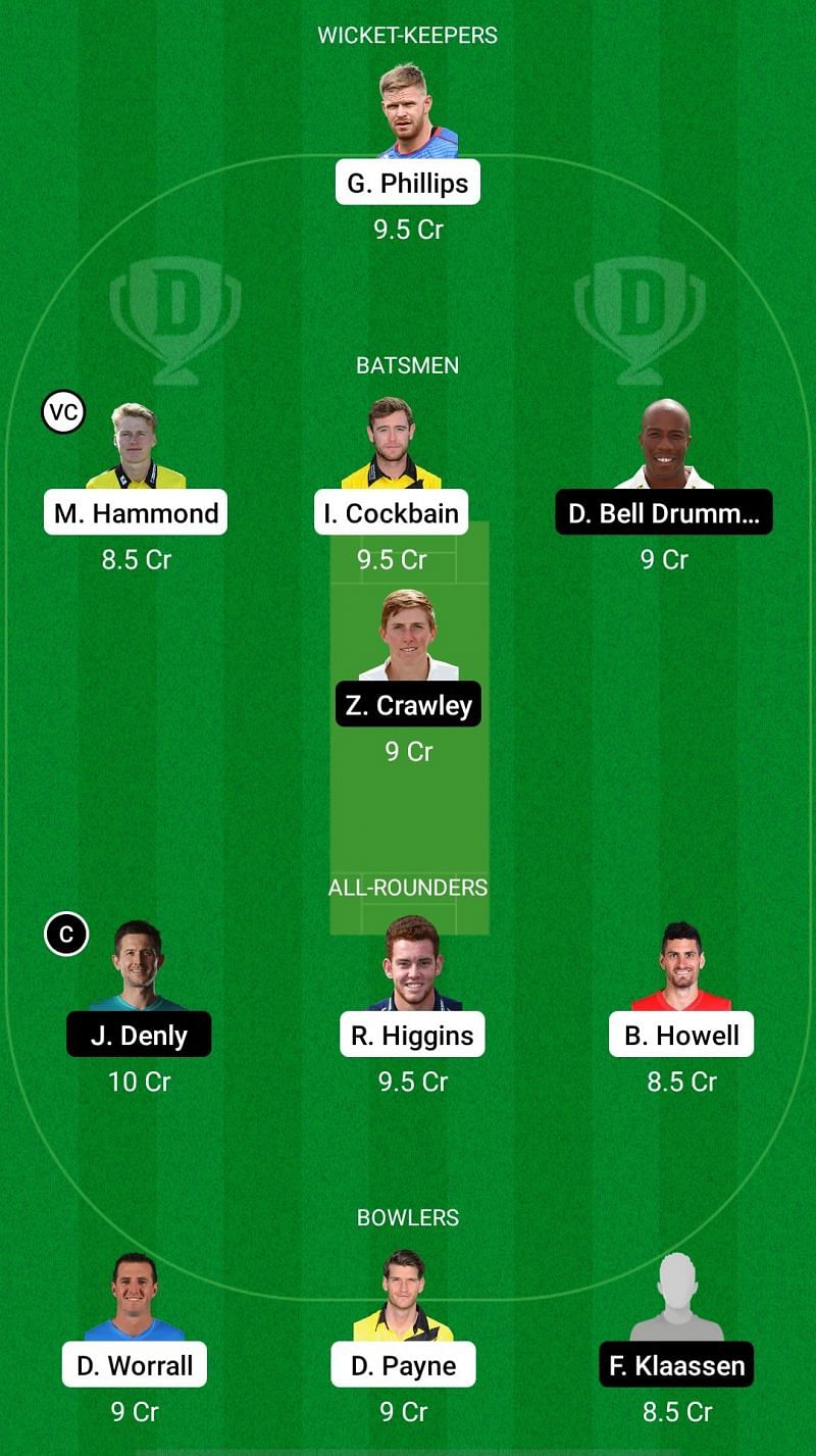 Fantasy Suggestion #2: Glenn Phillips, Miles Hammond, Chris Dent, Daniel Bell-Drummond, Jack Leaning, Joe Denly, Ryan Higgins, Daniel Worrall, Josh Shaw, Qais Ahmad, Fred Klaassen.