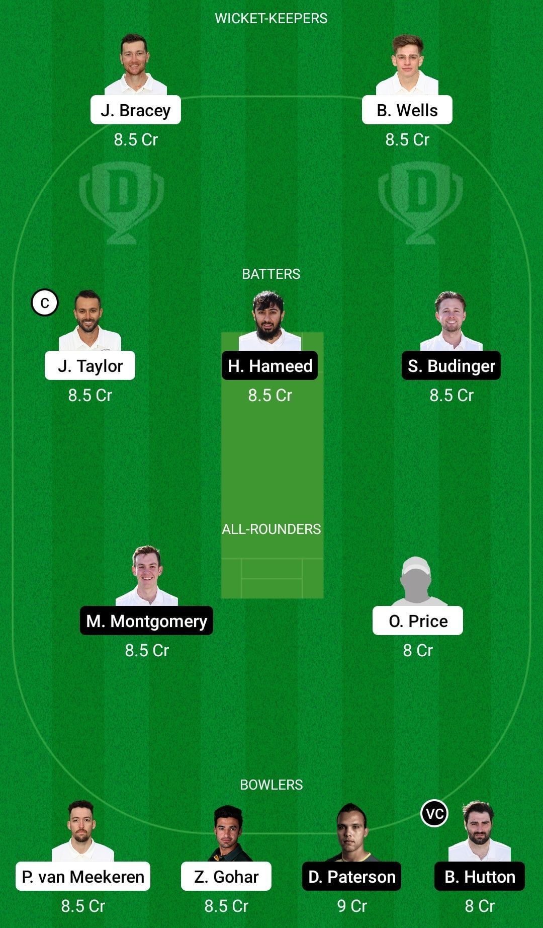 Fantasy Suggestion #2: James Bracey, Ben Wells, Jack Taylor, Haseeb Hameed, Soloman Budinger, Matthew Montgomery, Oliver Price, Paul van Meekeren, Zafar Gohar, Dane Paterson, Bret Hutton.