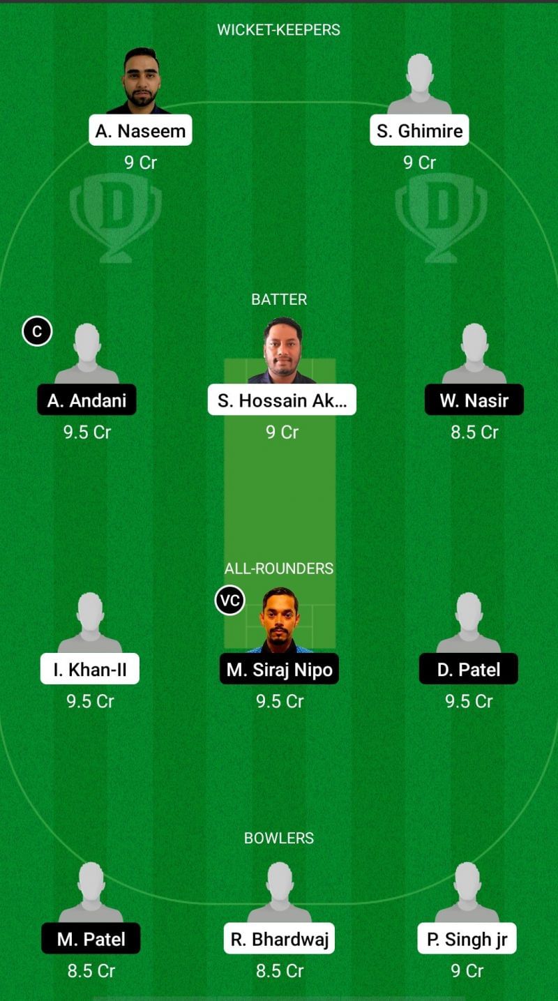 Fantasy Suggestion #2: Suman Ghimire, Imran Khan-II, Parveen Singh Jr, Saddam Hossain Akbory, Rahul Bhardwaj, Arslan Naseem, Azher Andani, Waqar Nasir, Dikshit Patel, Mohammad Siraj Nipo, Mitul Patel.