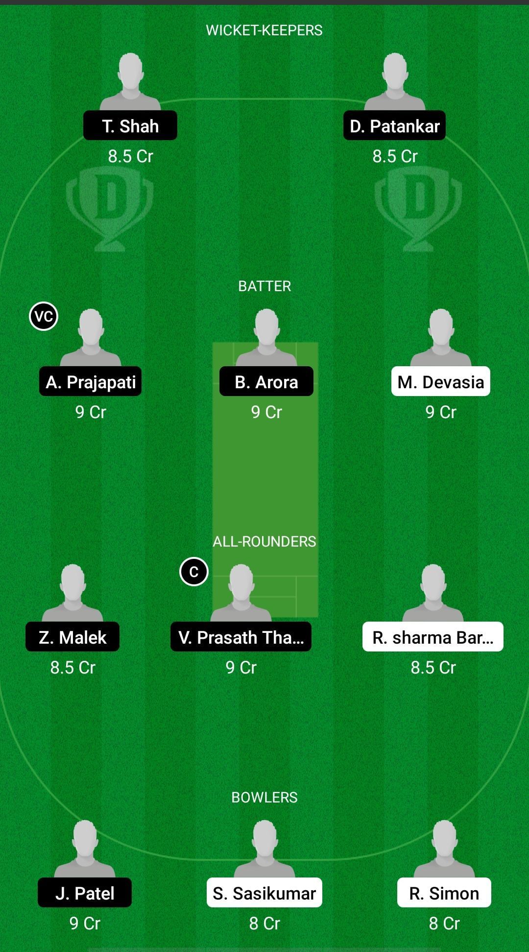 Fantasy Suggestion #2: Darshit Patankar, Abhishek Prajapati, Bikram Arora, Milton Devasia, Joshby Job, Zoheb Malek, Varun Prasath, Rajan Sharma, Jit Patel, Shubh Patel, Sandeep Sasikumar.