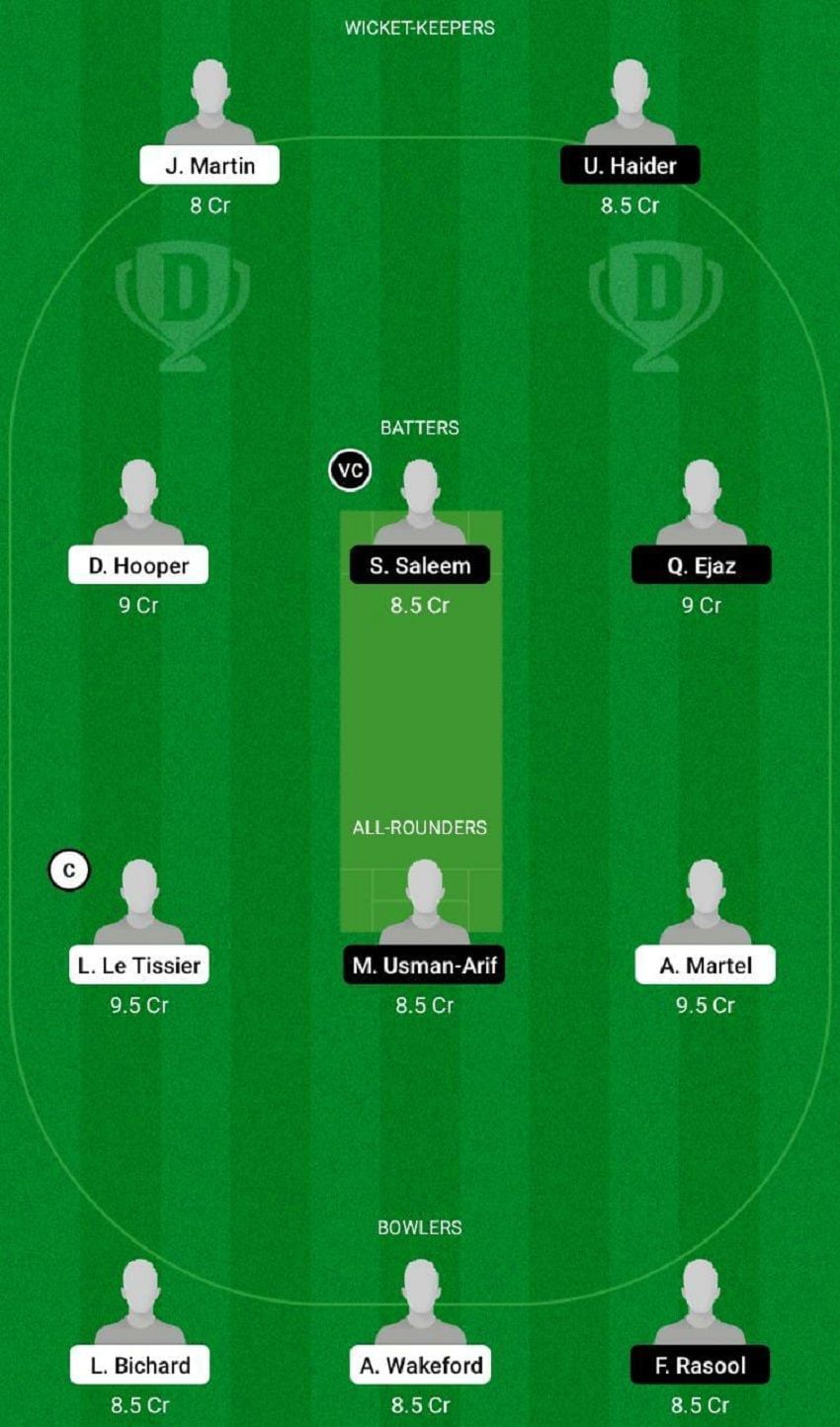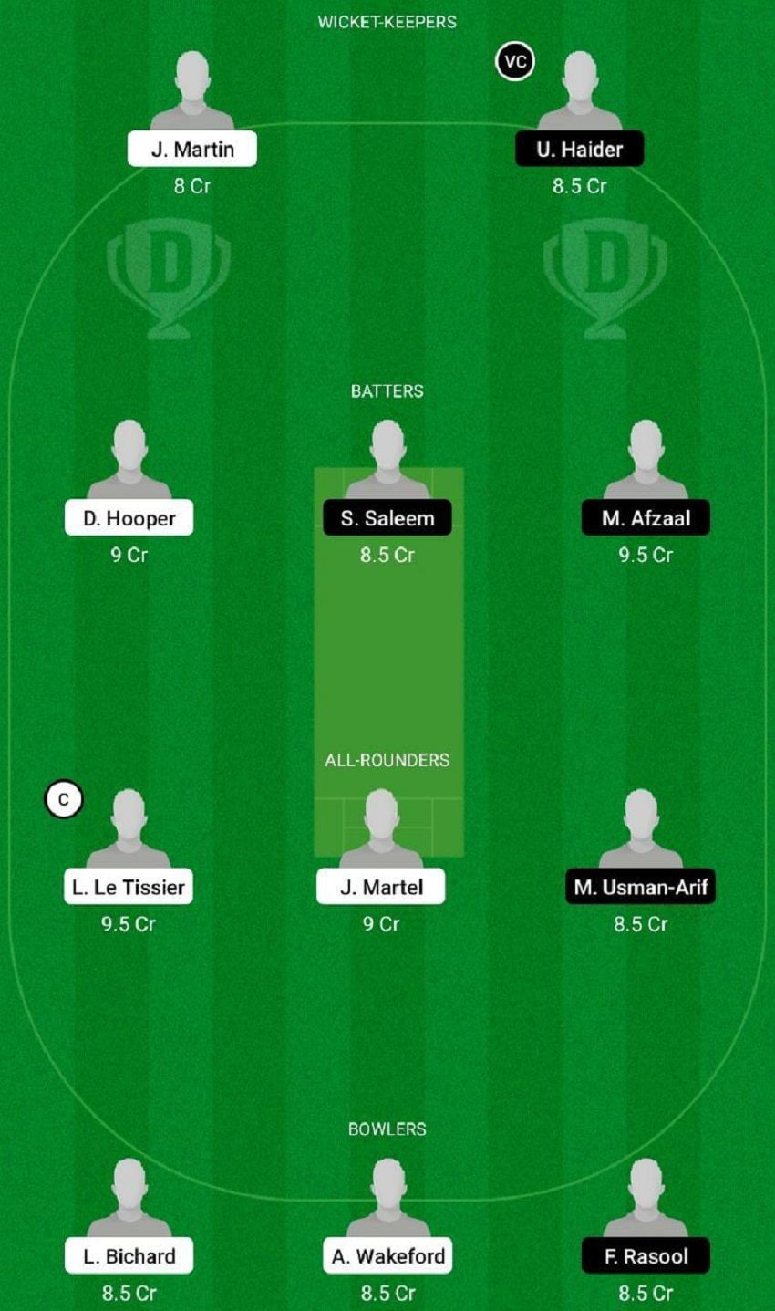Fantasy Suggestion #2: J Martin, U Haider, D Hooper, S Saleem, M Afzaal, L Le Tissier, M Usman Arif, J Martel, L Bichard, A Wakeford and F Rasool