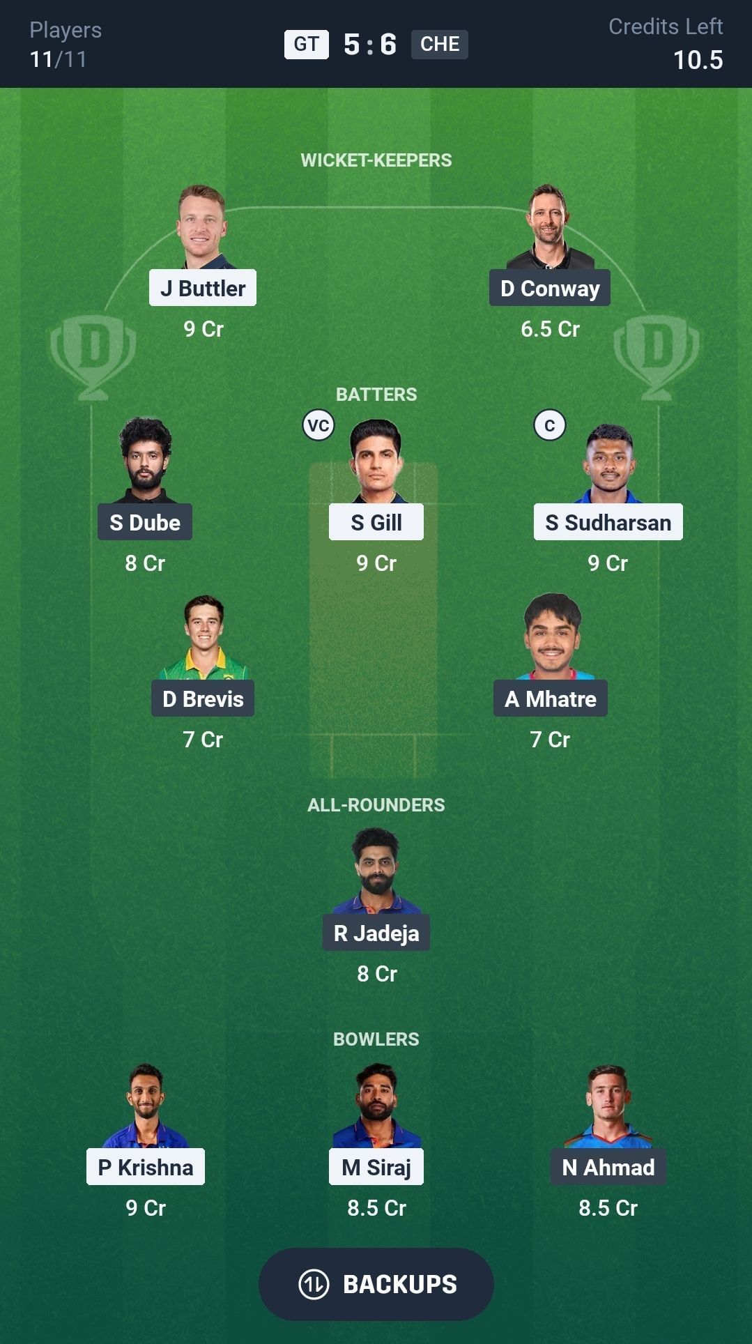 Batters: S Sudharsan, S Gill, D Brevis, A Mhatre