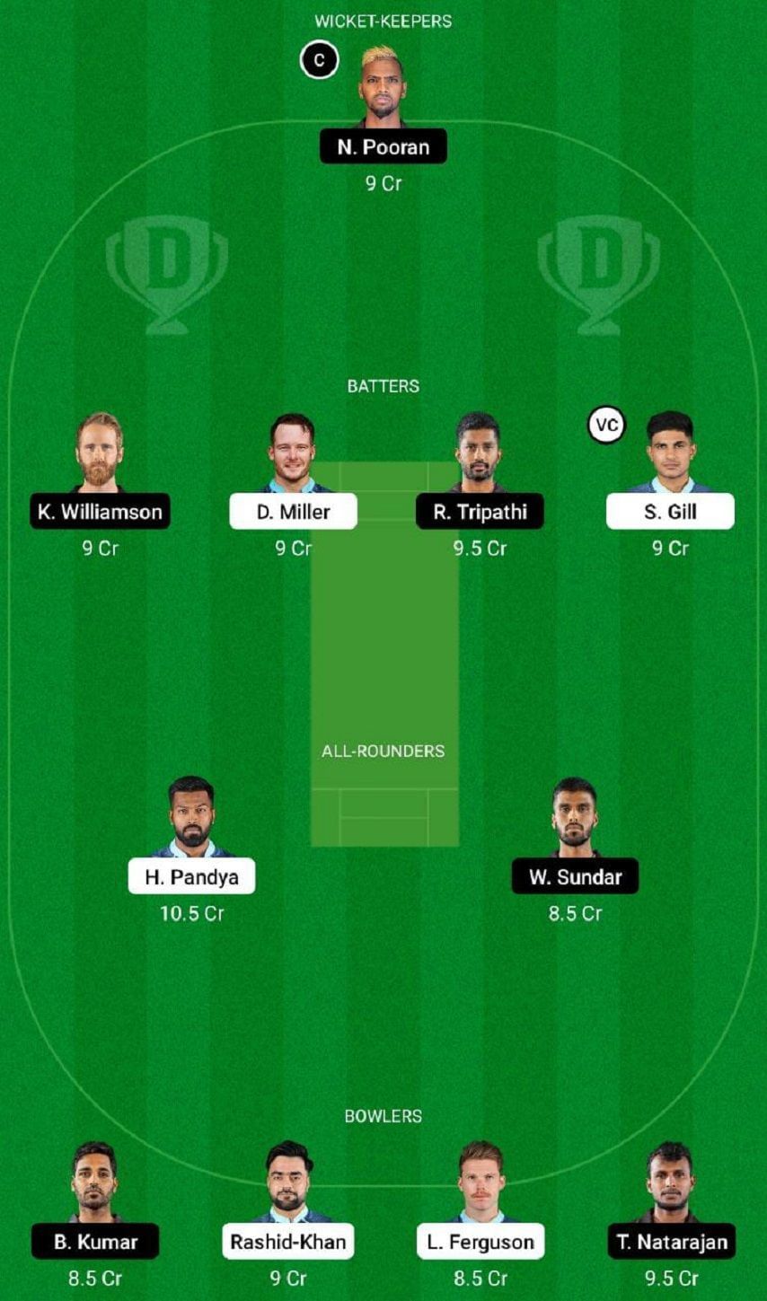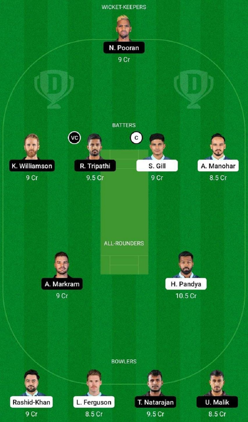Fantasy Suggestion #1: Nicholas Pooran, Shubman Gill, Rahul Tripathi, Kane Williamson, Abhinav Manohar, Aiden Markram, Hardik Pandya, Rashid Khan, Lockie Ferguson, T Natarajan and Umran Malik.