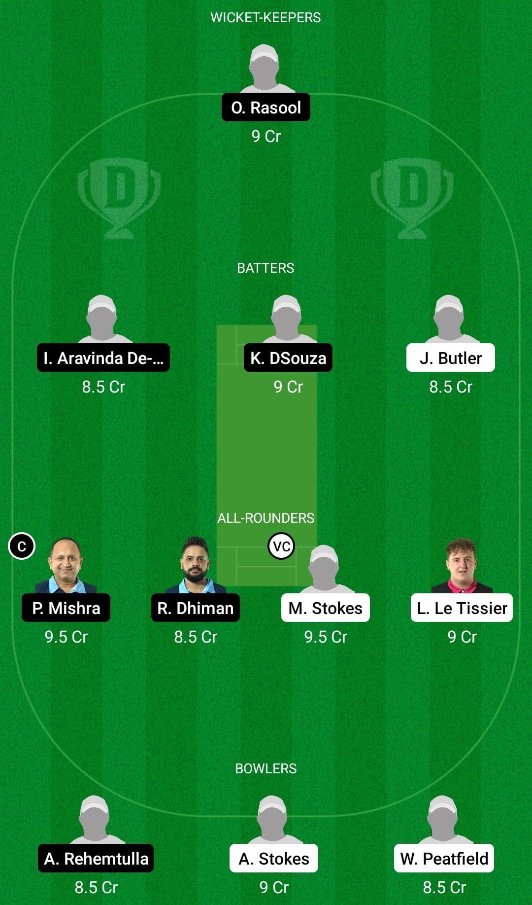 Captain: Prakash Mishra Vice-captain: Matthew Stokes