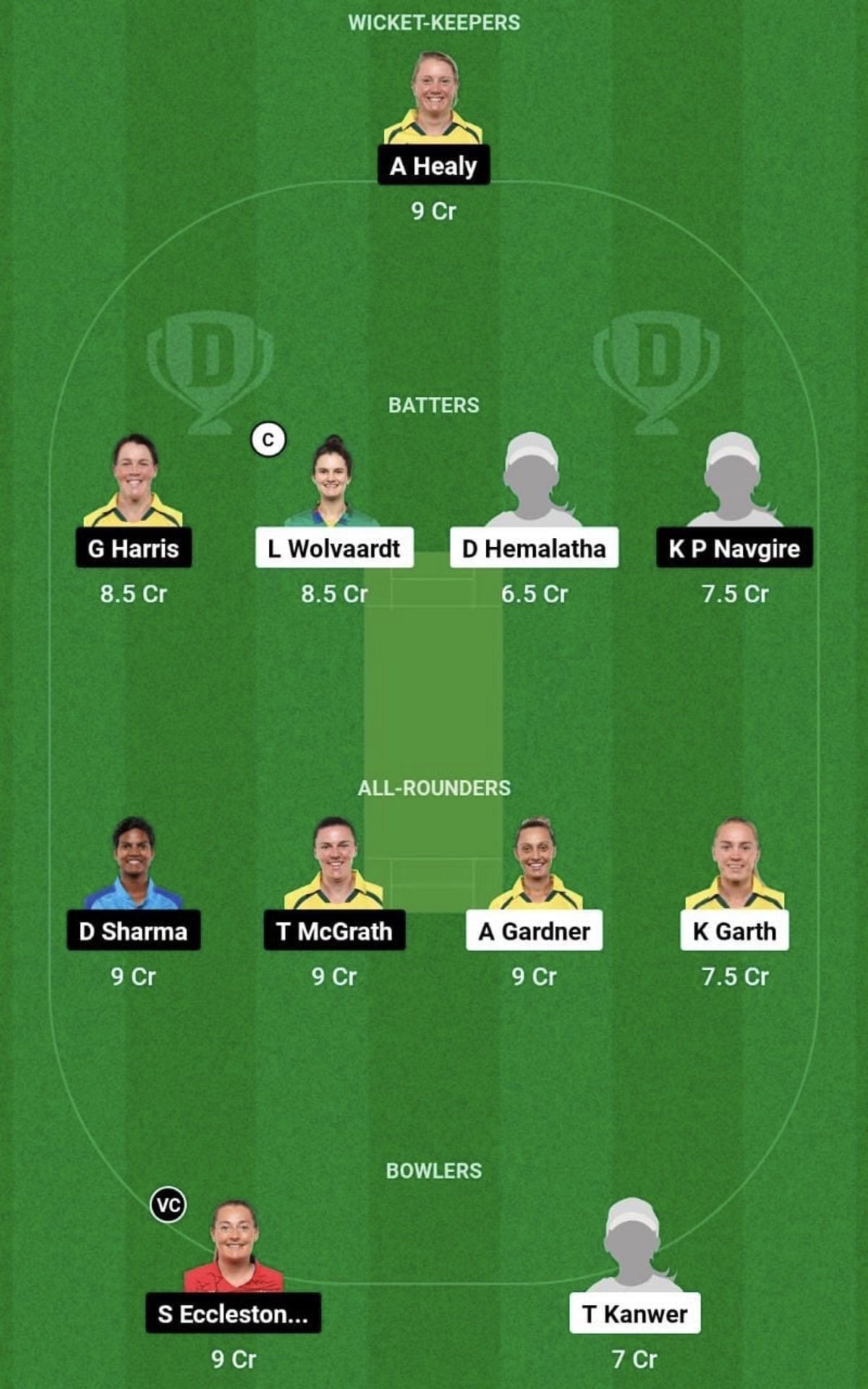Alyssa Healy (c&wk), Devika Vaidya, Kiran Navgire, Tahlia McGrath, Deepti Sharma, Grace Harris, Sophie Ecclestone, Simran Shaikh, Anjali Sarvani, Rajeshwari Gayakwad and Parshavi Chopra.