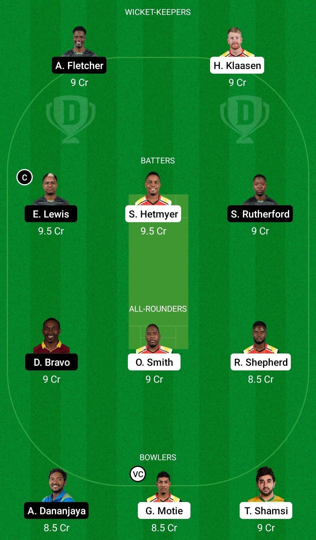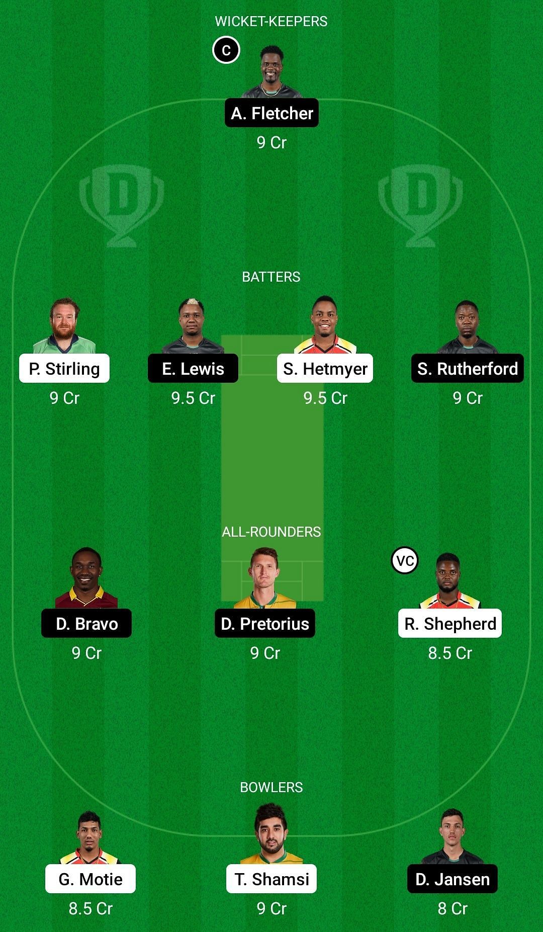 Chandrapaul Hemraj, Paul Stirling, Shai Hope, Shimron Hetmyer (c), Heinrich Klaasen (wk), Odean Smith, Romario Shepherd, Keemo Paul, Gudakesh Motie, Imran Tahir, Tabraiz Shamsi.