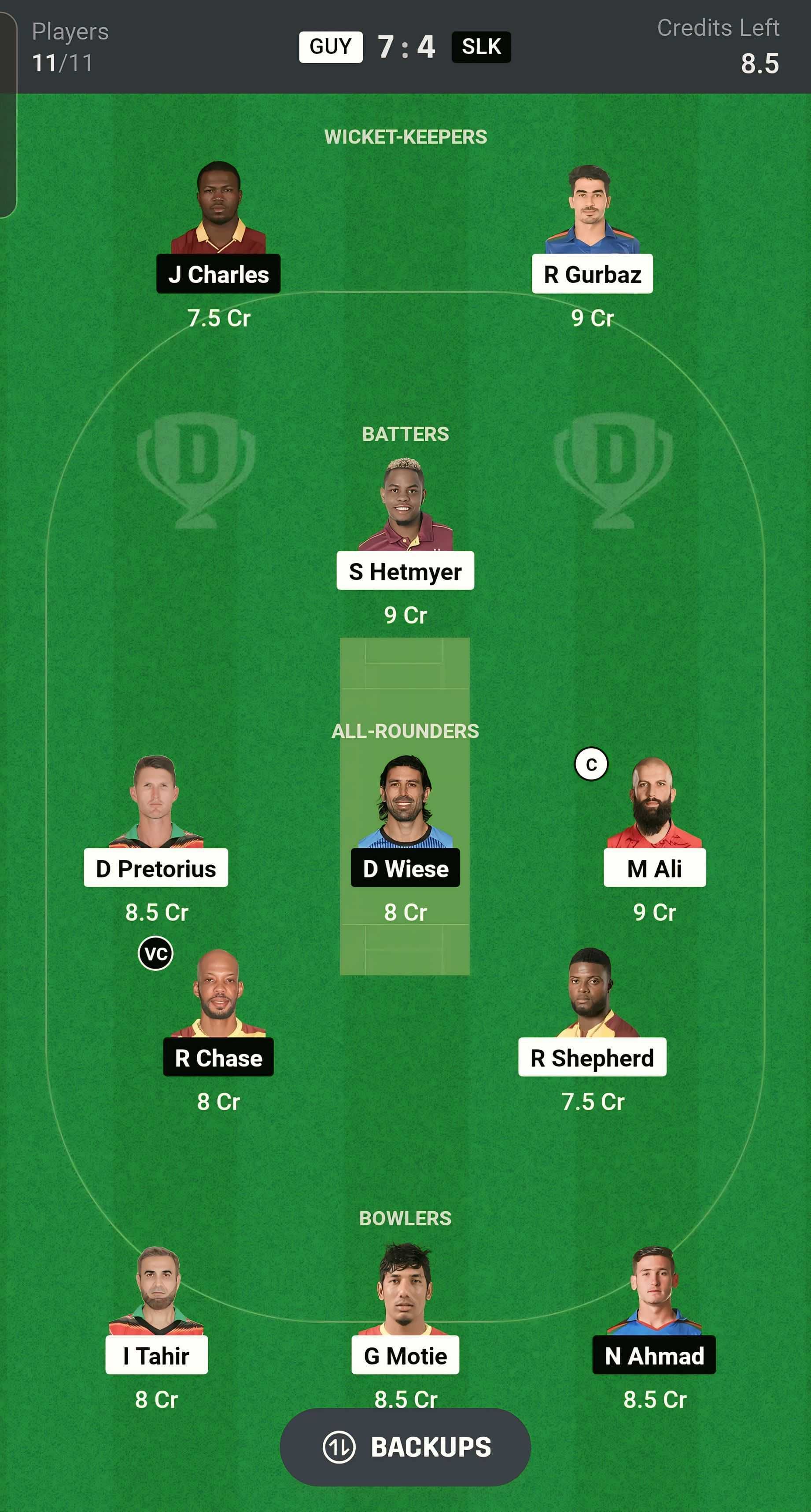 Dwaine Pretorius and Moeen Ali are the best all-rounder picks for your Dream11 team. Both will play a crucial role for their teams in today's match. Moeen Ali has scored 104 runs and taken eight wickets in the last five matches. Roston Chase is another good all-rounder for today's match.