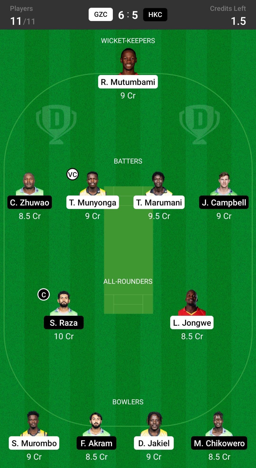 J Campbell and C Zhuwao are the two best batter picks. T Marumani has played exceptionally well in his last few games, so he's also a good pick.