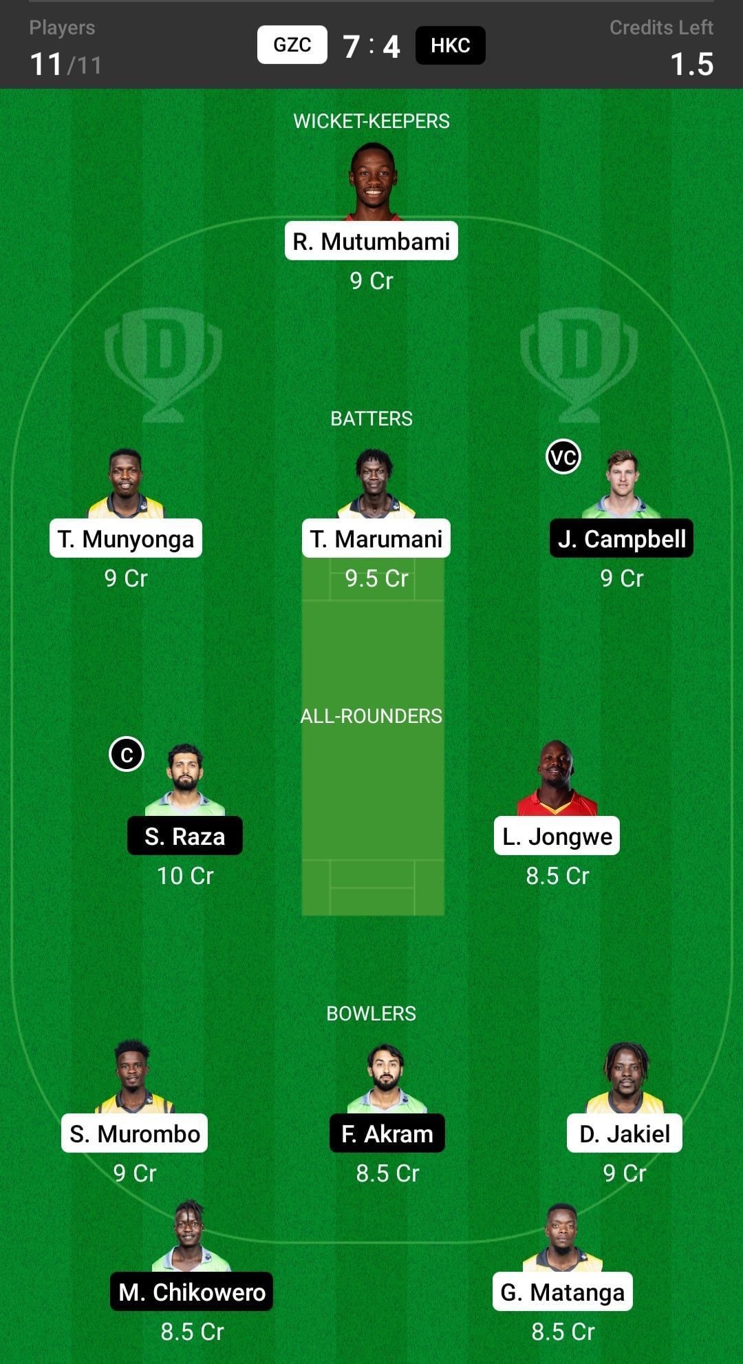 Great Zimbabwe Cricket Club vs Harare King Cricket Club Dream11 Prediction, Grand League