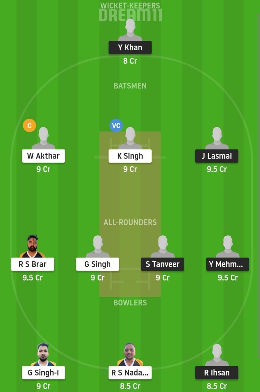 Fantasy Suggestion #1: Y Khan, W Akhtar, K Singh, J Lasmal, G Singh, RS Brar, S Tanveer, Y Mehmood, R Ihsan, G Singh, R S Nadania