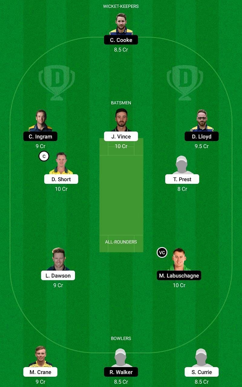 Fantasy Suggestion #2: Chris Cooke, D'Arcy Short, Colin de Grandhomme, David Lloyd, Colin Ingram, Tom Prest, Marnus Labuschagne, Liam Dawson, Mason Crane, Brad Wheal and Roman Walker