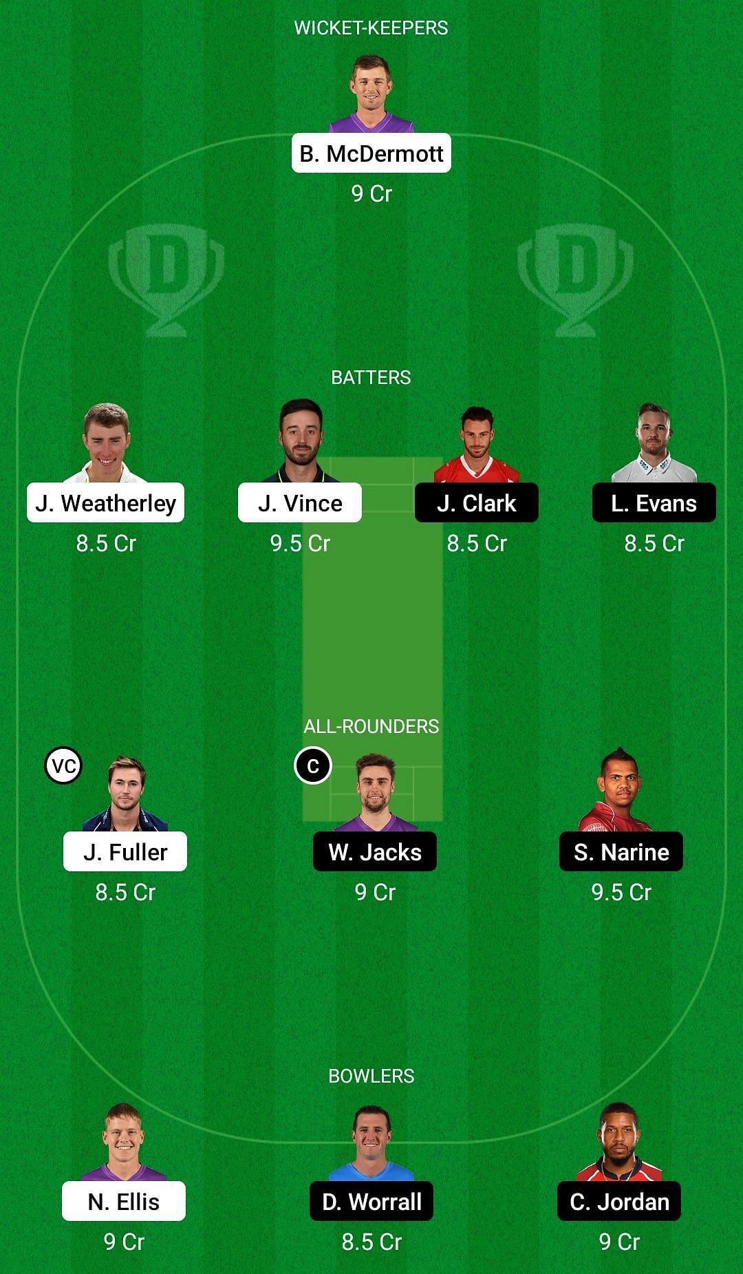 Captain: James Vince Vice-captain: Sunil Narine