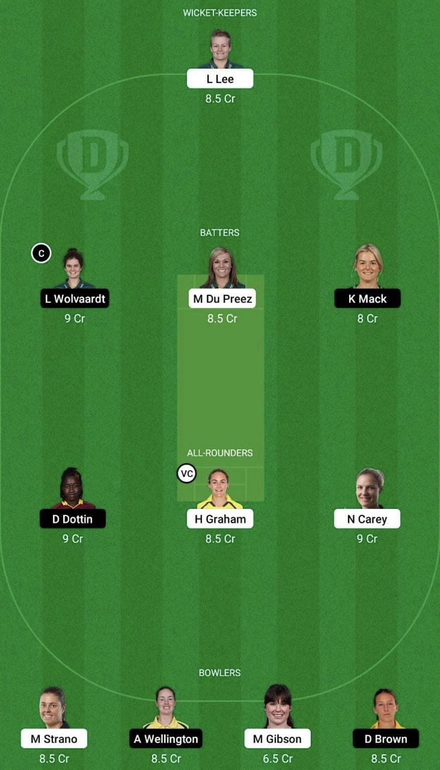 Deandra Dottin, Katie Mack, Laura Wolvaardt, Bridget Patterson, Madeline Penna, Annie O'Neil/Tahlia McGrath, Amanda Wellington, Tegan McPharlin (wk), Jemma Barsby, Megan Schutt (c) and Darcie Brown.