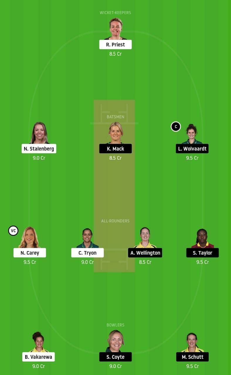 Fantasy Suggestion #1: R Priest, L Wolvaardt, K Mack, N Stalenberg, A Wellington, N Carey, C Tryon, S Taylor, M Schutt, S Coyte and B Vakarewa