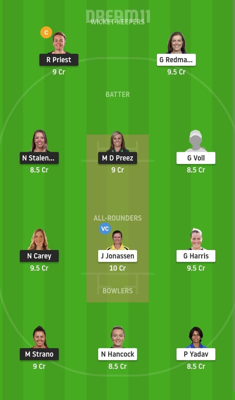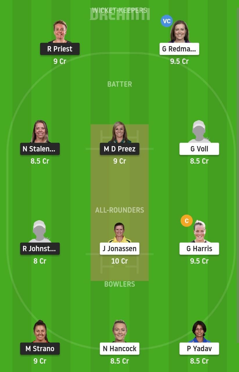 Fantasy Suggestion #1: Rachel Priest, Georgia Redmayne, Georgia Voll, Naomi Stalenburg, Mignon du Preez, Jess Jonassen, Grace Harris, Nicola Carey, Molly Strano, Nicola Hancock, Poonam Yadav