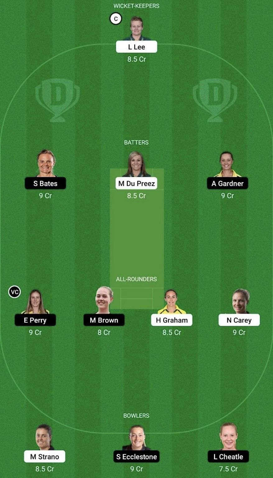 Ashleigh Gardner has been fairly decent with the ball this season, picking up four wickets at an economy rate of 5.81. However, her true value lies within her batting ability with a WBBL strike rate of nearly 120. With Gardner due for a big performance, she is a top choice as captain or vice-captain in your HB-W vs SS-W Dream11 prediction team.