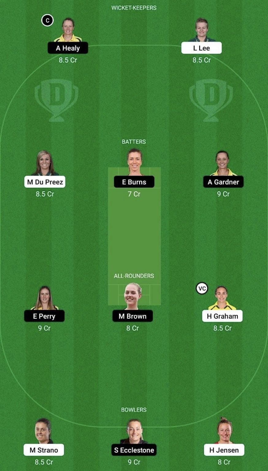 Rain is expected to play a part with a shortened game on the cards. If overs were to be reduced, the Sydney Sixers could use Ashleigh Gardner higher up the order given her ability to score quick runs. With Gardner doubling up as a bowling option as well, she could be a game-changing selection in your HB-W vs SS-W Dream11 prediction team.