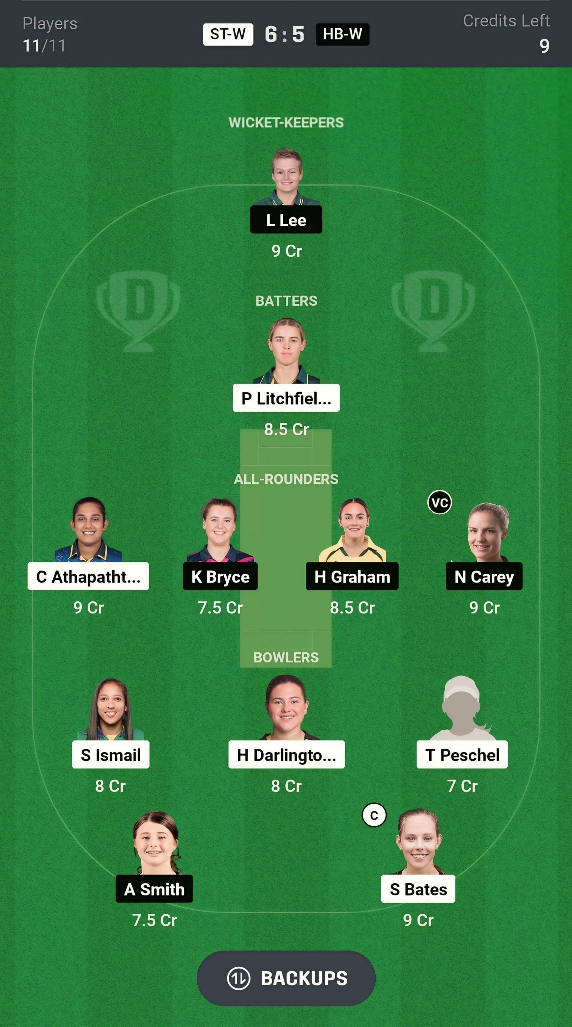 Nicola Carey is in top notch form. She has an excellent record well both with bat and ball. She will bat in the top order and complete her quota of overs, which makes her the top captaincy or vice-captaincy option for today's match. She has already smashed 227 runs and taken 11 wickets in the last ten matches of the tournament.