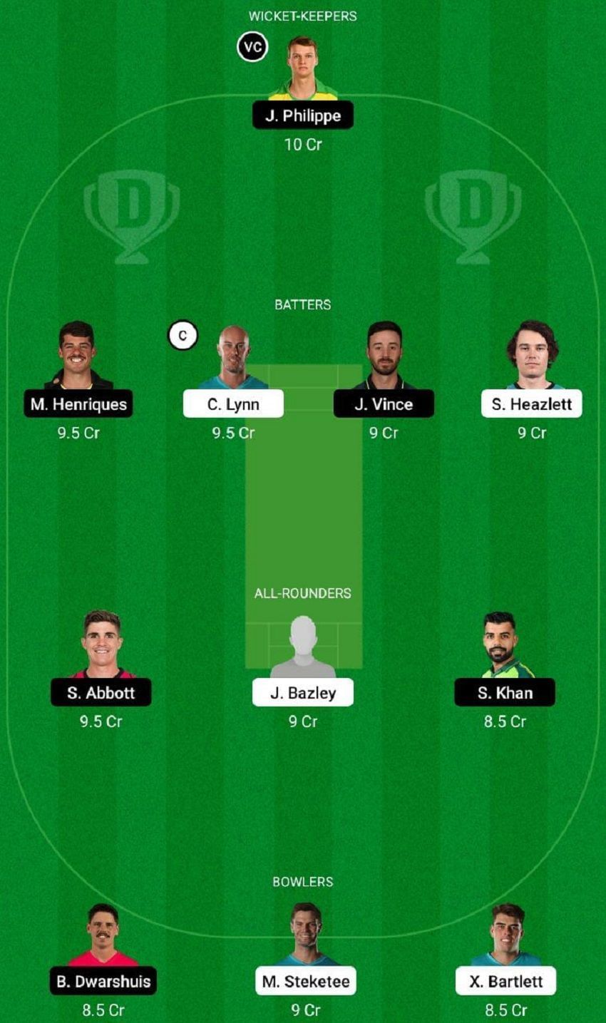 Fantasy Suggestion #1: Josh Philippe, Moises Henriques, Chris Lynn, James Vince, Sam Heazlett, Sean Abbott, James Bazley, Shadab Khan, Ben Dwarshuis, Mark Steketee and Xavier Bartlett