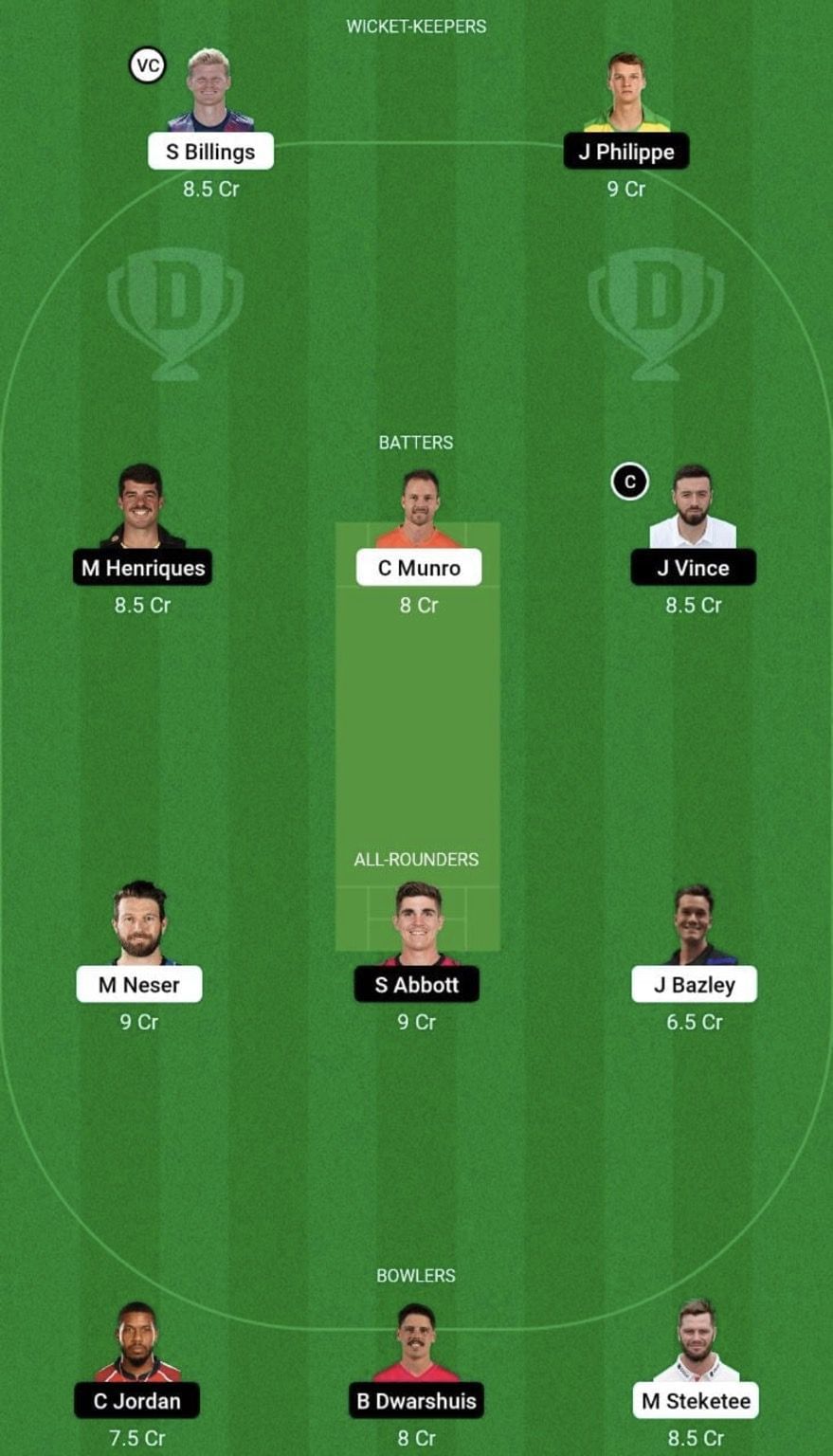 Sam Billings has shown signs of form this season with 116 runs in five matches, including a fifty against the Adelaide Strikers. The Englishman is a decent player of both pace and spin and is likely to bat at No. 4. With Billings due for a big knock, he can be backed as a captaincy pick in your HEA vs SIX Dream11 prediction team.