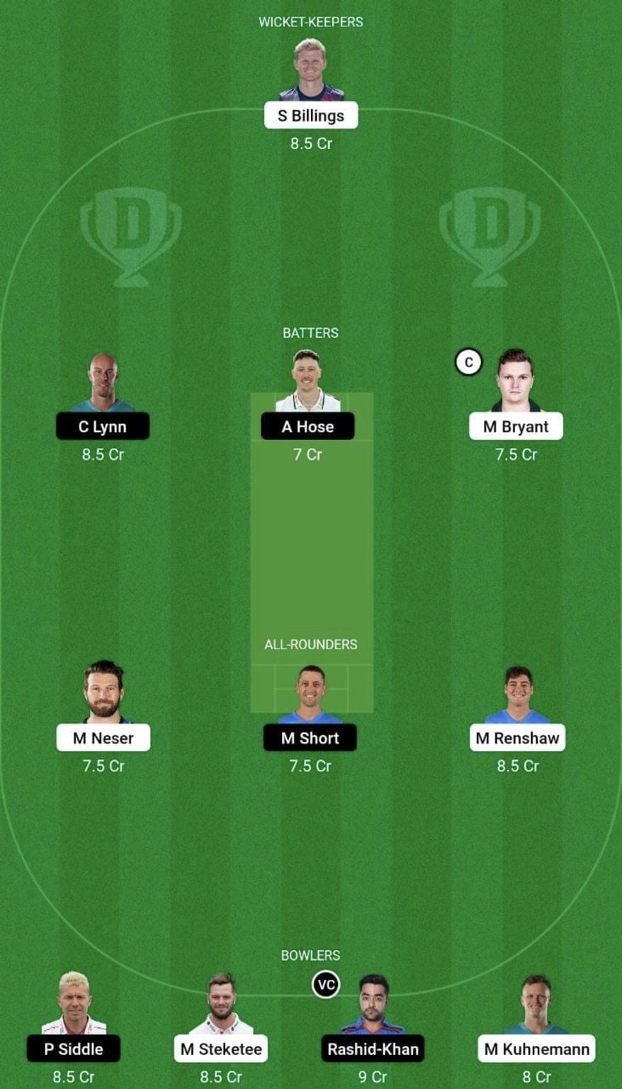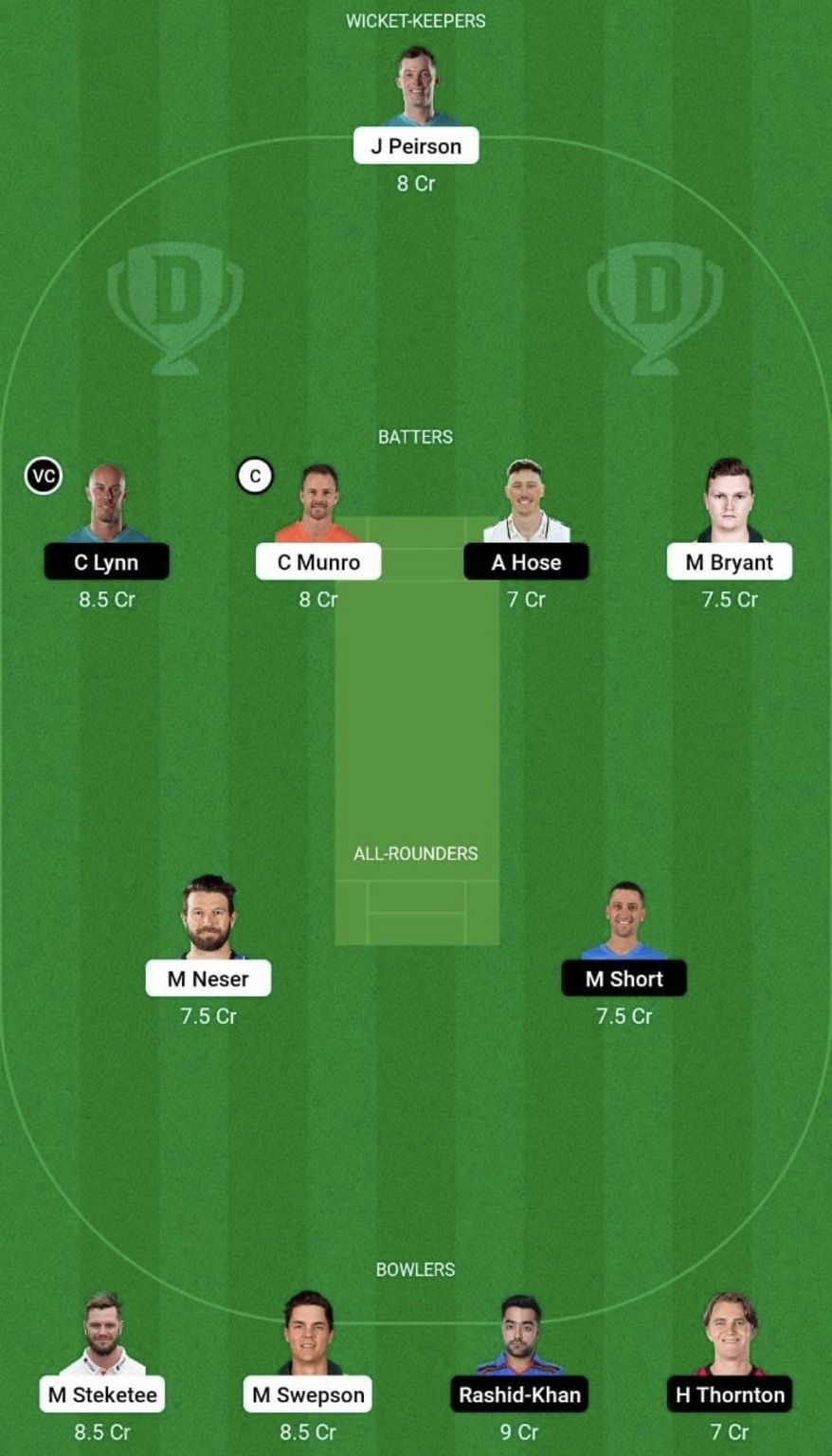 Jake Weatherald, Matt Short, Chris Lynn, Adam Hose, Harry Nielsen (wk), Colin de Grandhomme, Thomas Kelly, Rashid Khan, Wes Agar, Henry Thornton, and Peter Siddle.
