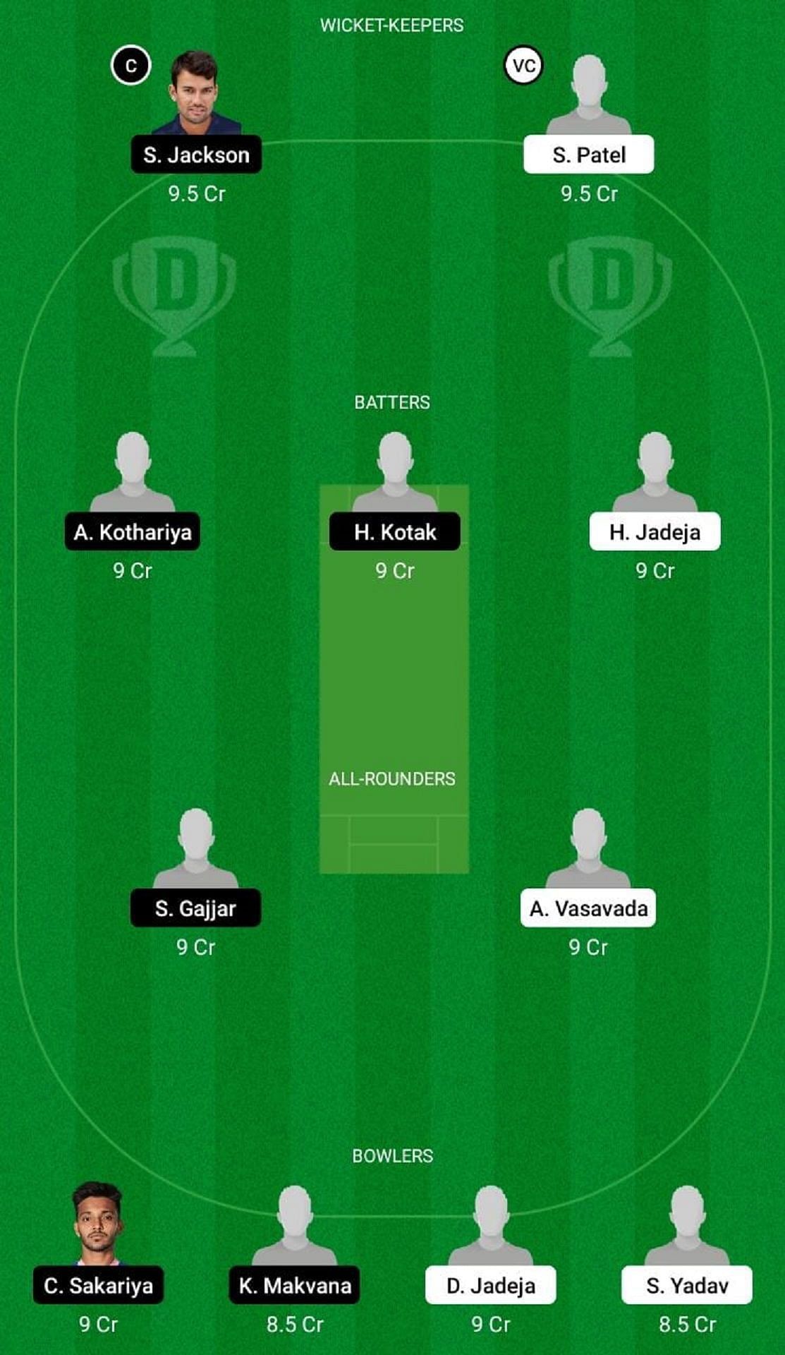 Fantasy Suggestion #1: S Jackson, S Patel, A Kothariya, H Kotak, H Jadeja, S Gajjar, A Vasavada, D Jadeja, S Yadav, K Makvana, C Sakariya