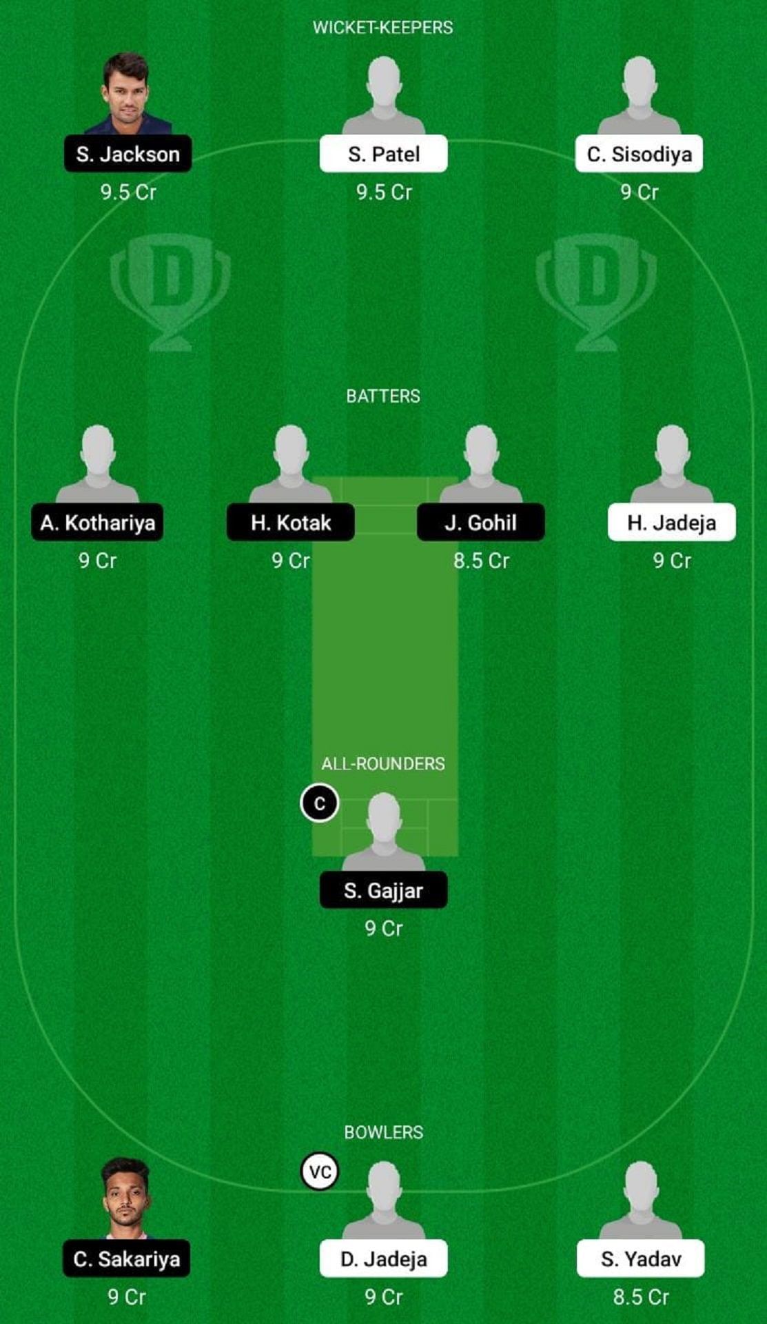 Fantasy Suggestion #2: S Jackson, S Patel, C Sisodiya, J Gohil, A Kothariya, H Kotak, H Jadeja, S Gajjar, D Jadeja, S Yadav, C Sakariya