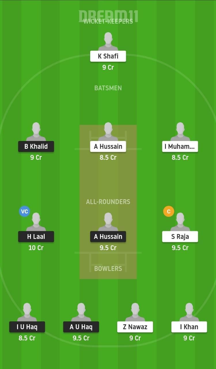 Fantasy Suggestion #1: Kashif Shafi, Irfan Muhammad, Abid Hussain, Bakhtair Khalid, Sikandar Raja, Heera Laal, Alumdar Hussain, Zahid Nawaz, Anwar Ul Haq, Ikram Ul Haq, Innam Khan