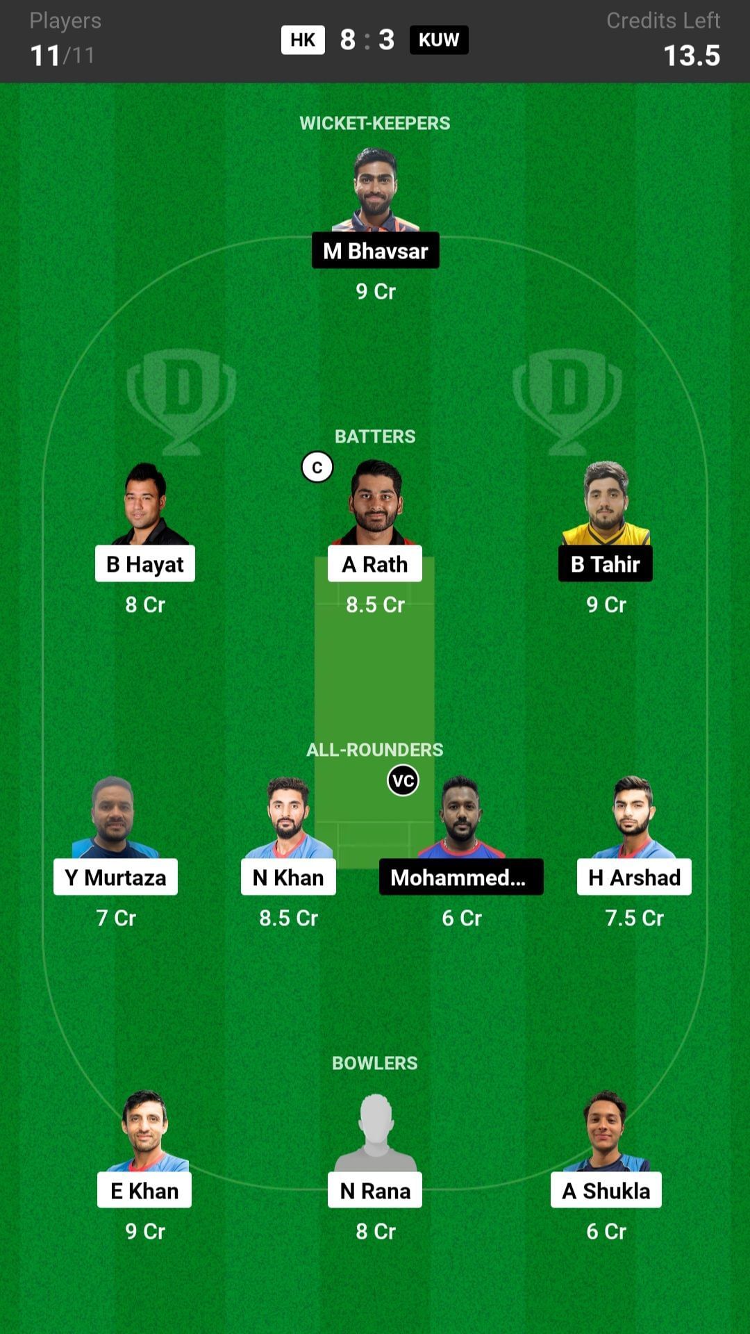 HK vs KUW match captain and vice-captain choices