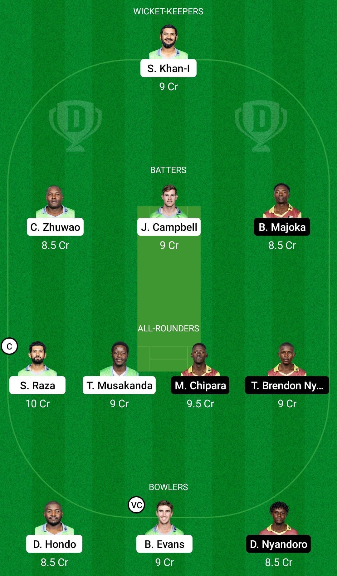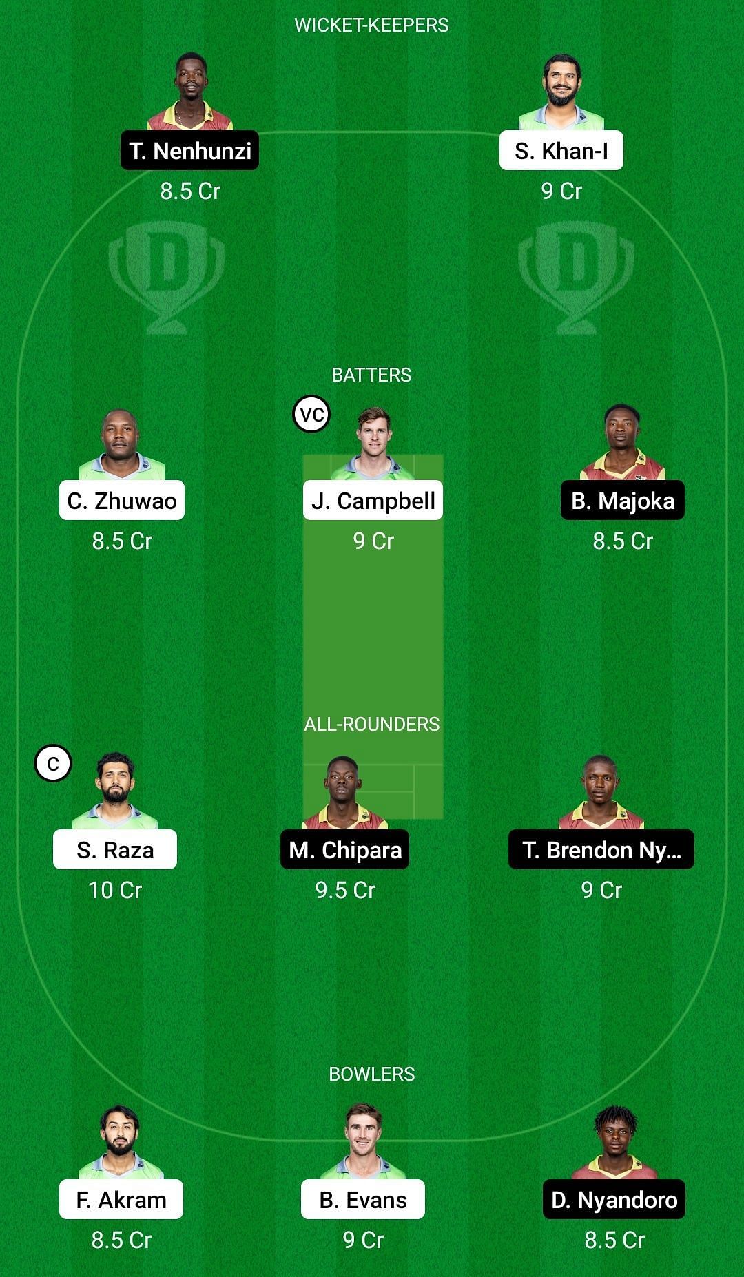 Sikandar Raza is an automatic choice as fantasy captain as he has been simply outstanding in this tournament. Johnathan Campbell and Brad Evans can also have an all-round impact which makes them vital picks.
