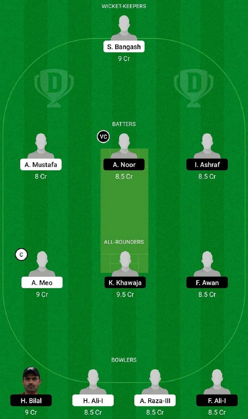 Fantasy Suggestion #1: S Bangash, A Mustafa, A Noor, N Khan, A Meo, K Khawaja, T Khan, H Bilal, A Anwaar, H Ali and A Raza.