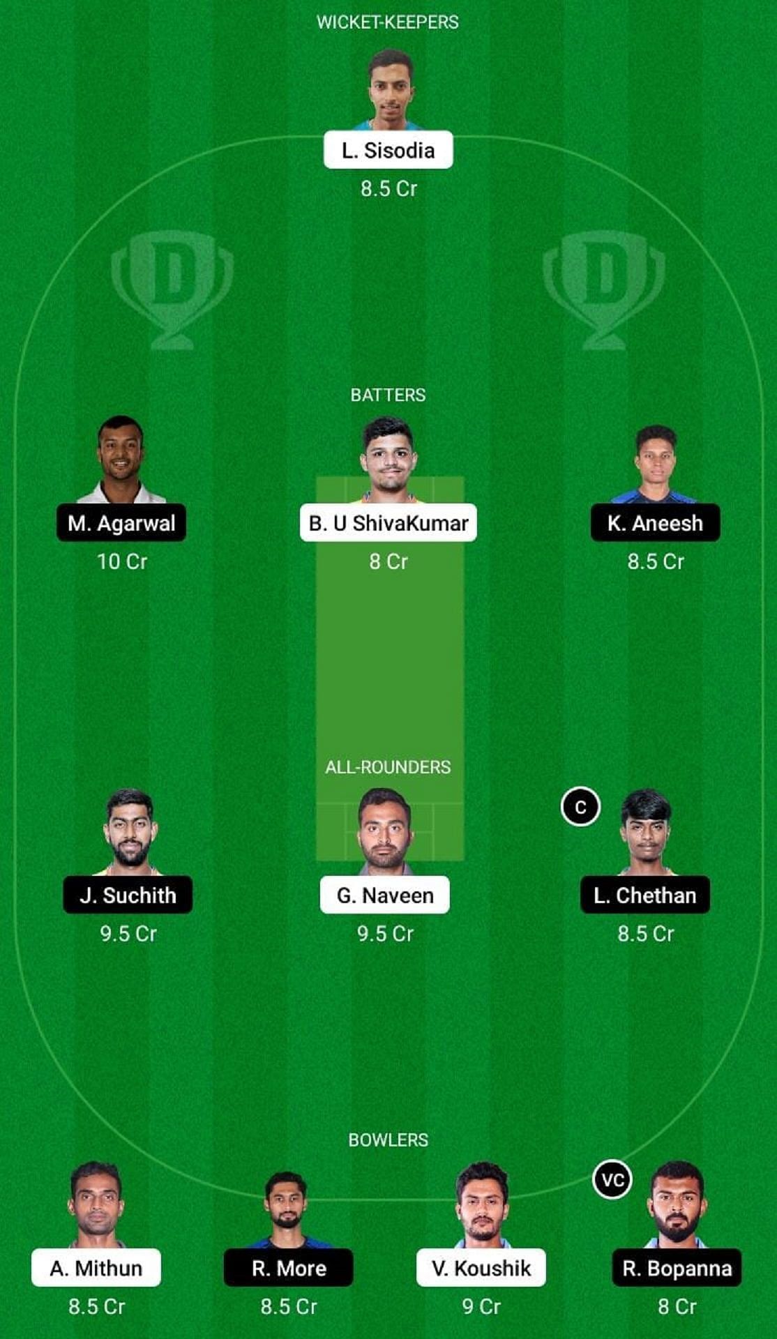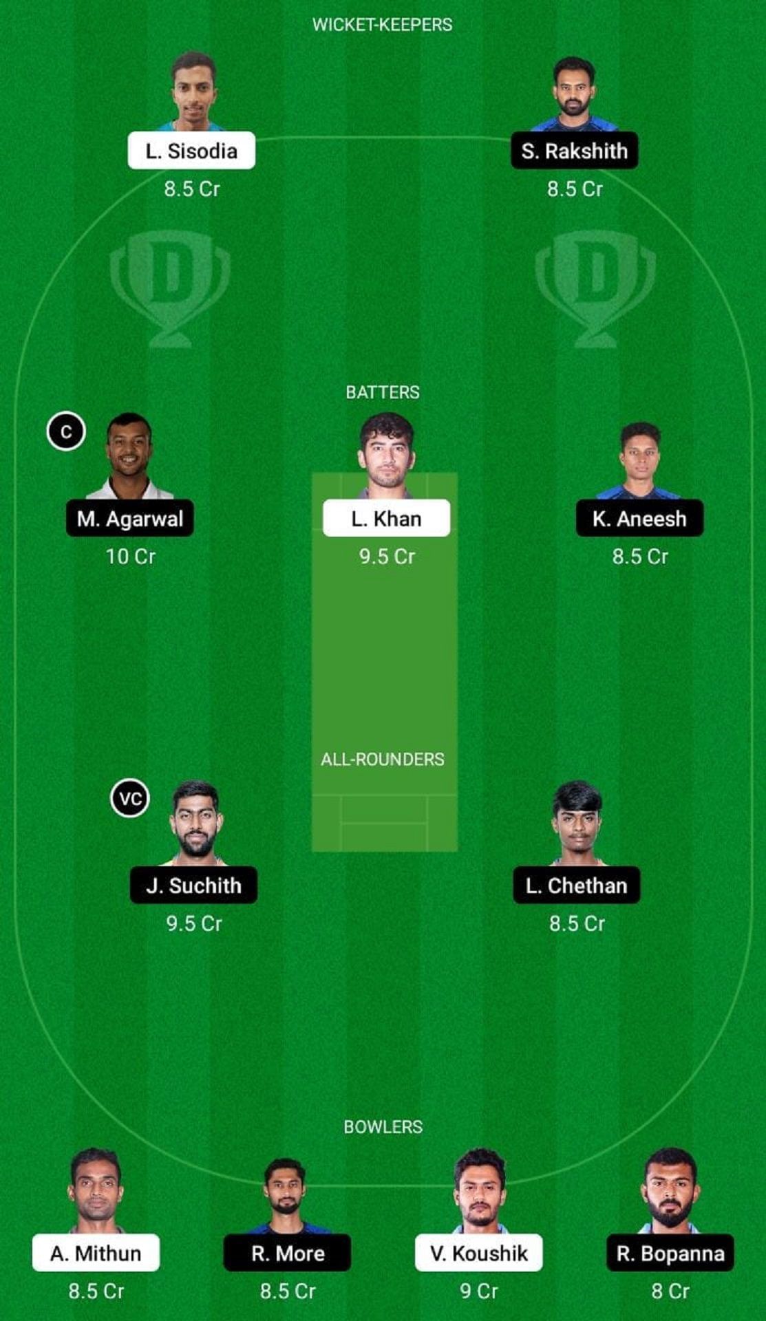 Luvnith Sisodia (wk/c), Liyan Khan, Srinivas Sharath, Naveen MG, Tushar Singh, BU Shiva Kumar, Swapnil Yelave, Abhimanyu Mithun, Vasuki Koushik, Anand Doddamani, Sharan Goud.