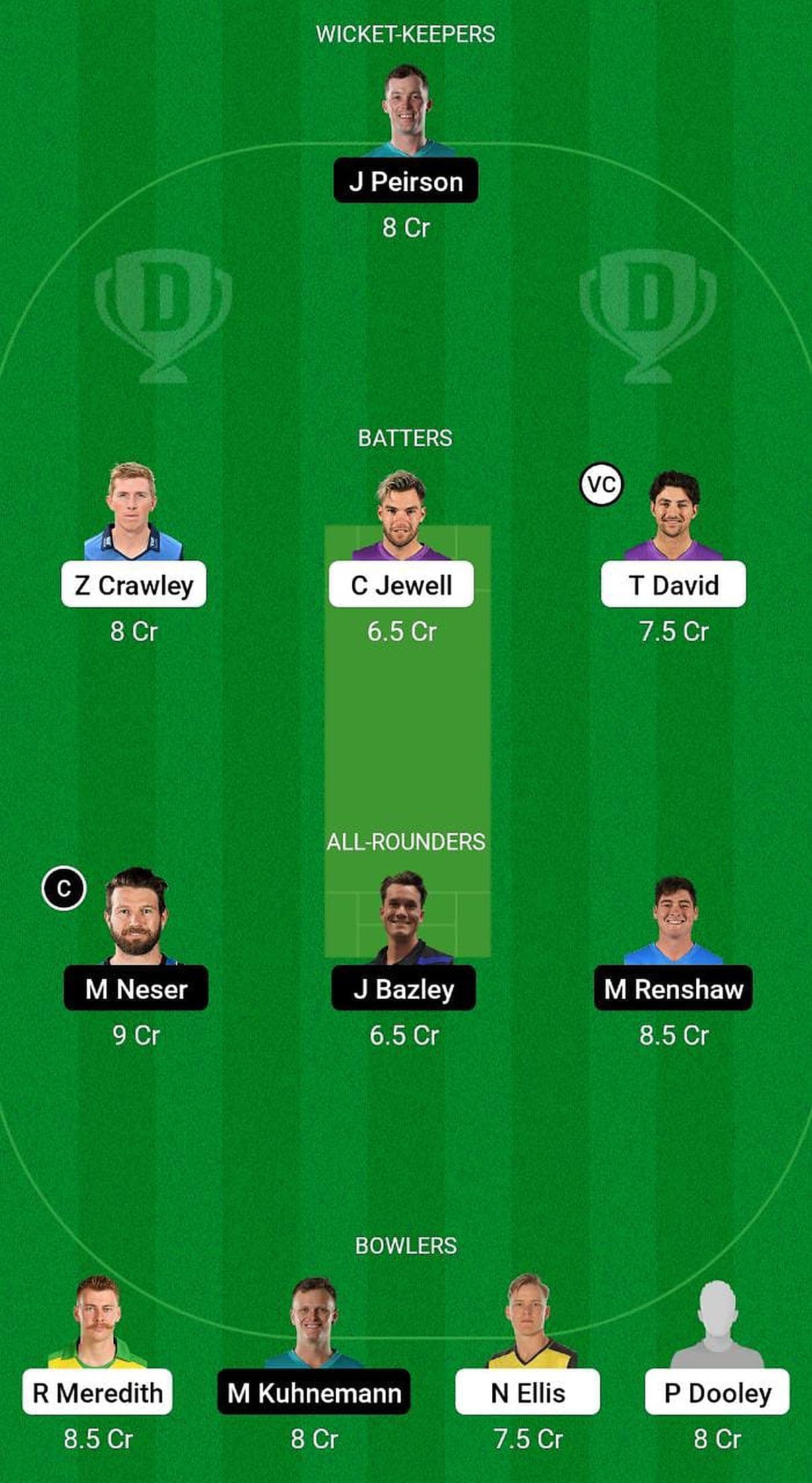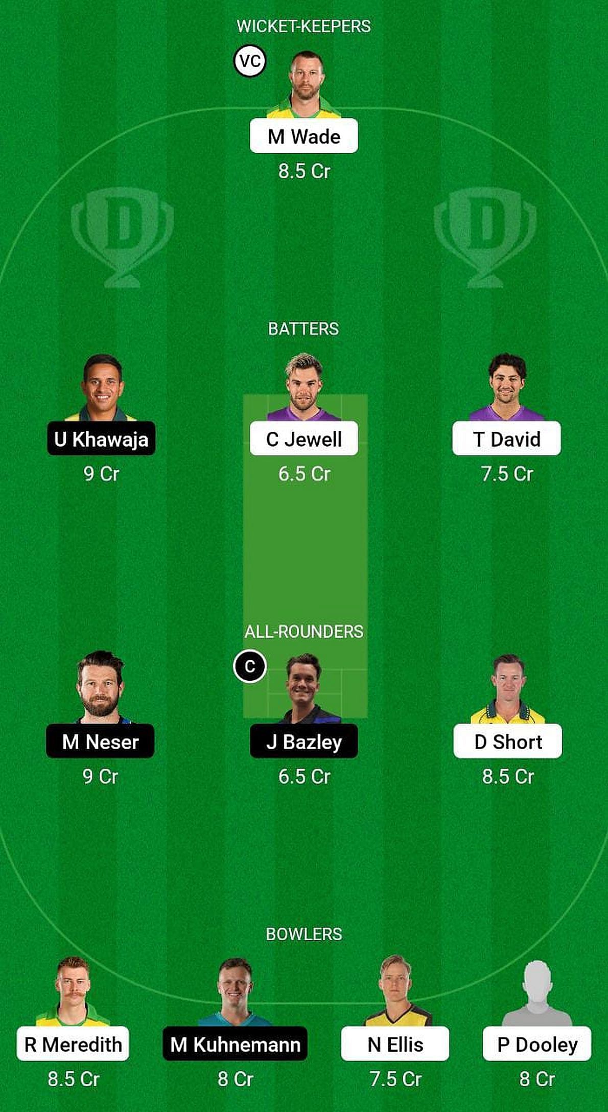 Caleb Jewell, Ben McDermott, Zak Crawley, Tim David, Matthew Wade (c & wk), D Arcy Short, Faheem Ashraf, Joel Paris, Nathan Ellis, Patrick Dooley, Riley Meredith
