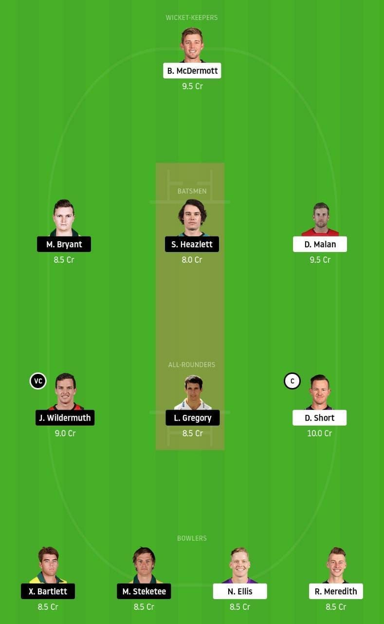 Fantasy Suggestion #1: Ben McDermott, Max Bryant, Sam Heazlett, Dawid Malan, D'Arcy Short, Jack Wildermuth, Lewis Gregory, Riley Meredith, Nathan Ellis, Mark Steketee, and Xavier Bartlett