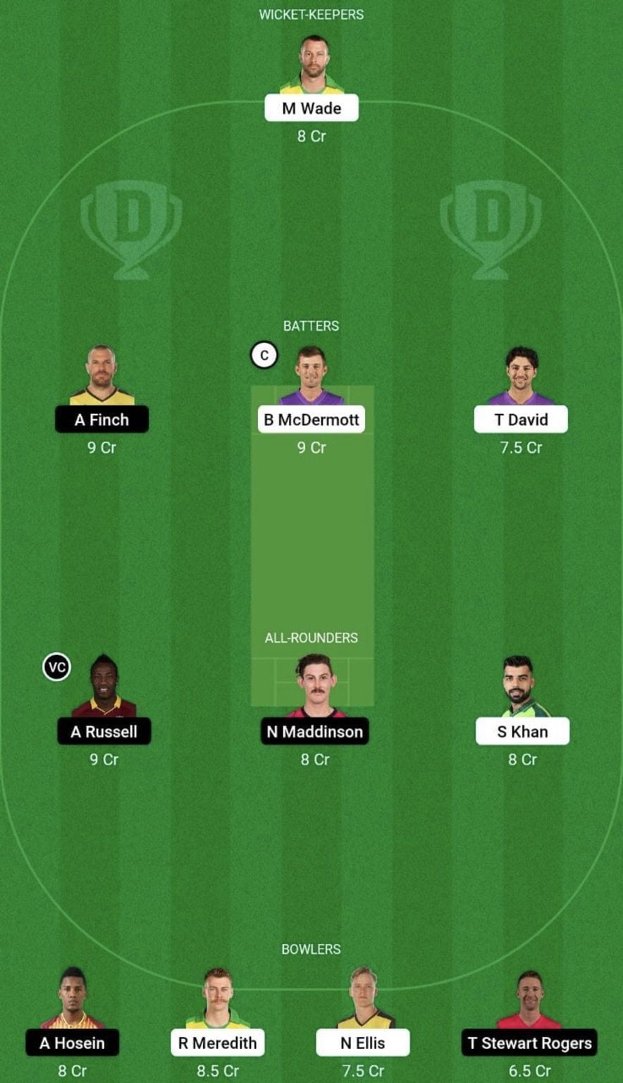 D'Arcy Short, Ben McDermott, Matthew Wade (c&wk), Shadab Khan, Tim David, Asif Ali, James Neesham, Nathan Ellis, Joel Paris, Patrick Dooley and Riley Meredith.