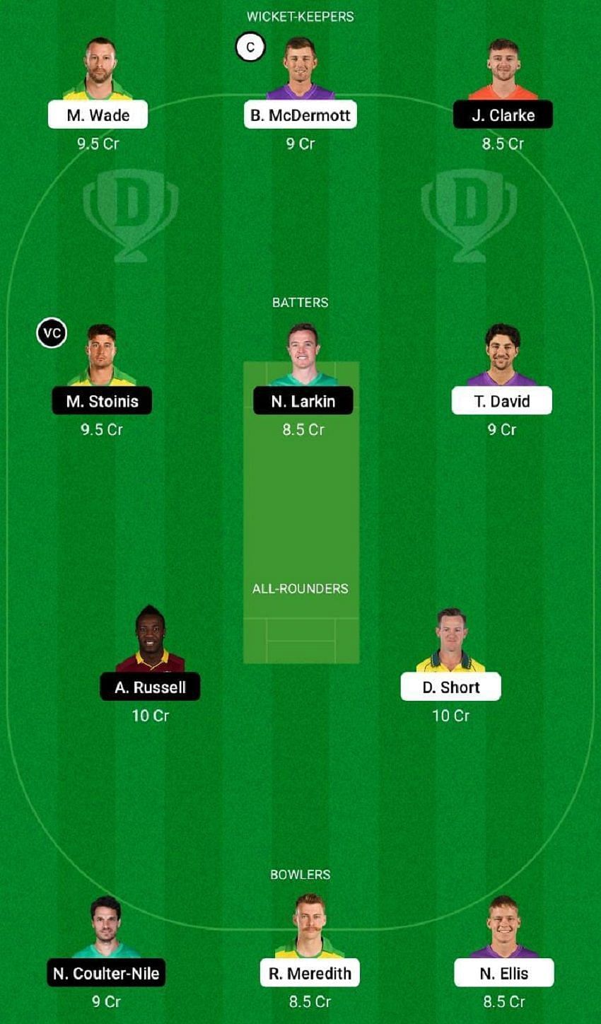 Fantasy Suggestion #1: Matt Wade, Ben McDermott, Joe Clarke, Marcus Stoinis, Nick Larkin, Tim David, Andre Russell, D'Arcy Short, Nathan Coulter-Nile, Riley Meredith and Nathan Ellis