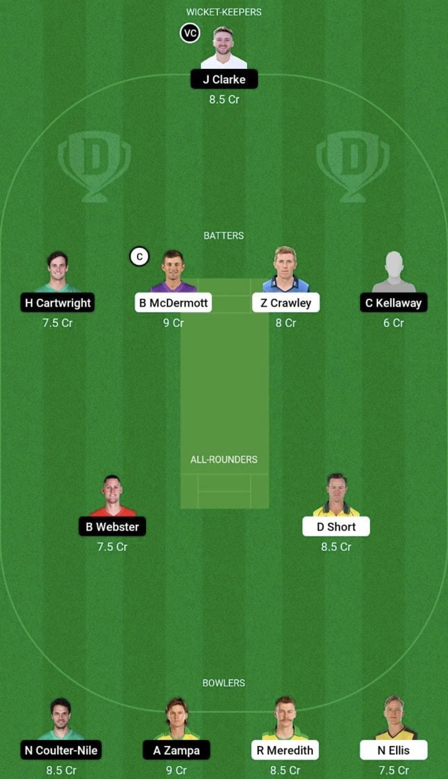 Beau Webster has stepped up at times of need for the Stars, scoring 168 runs at an average of 21.00. He has a fifty to his name in addition to taking six wickets this season. With Marcus Stoinis being unavailable for this game, Webster should take up the fifth bowler's role, making him a good pick for your HUR vs STA Dream11 prediction team.