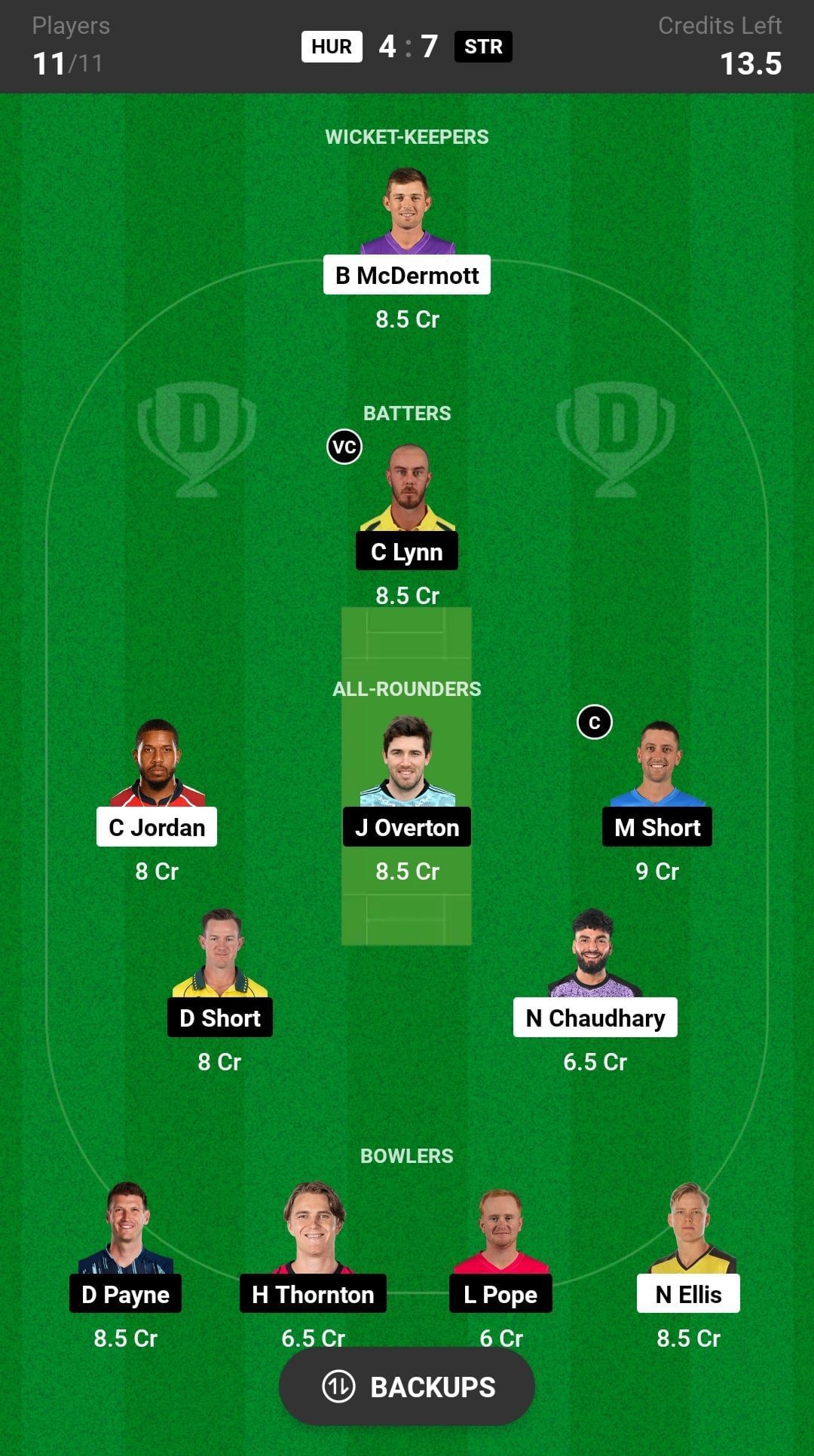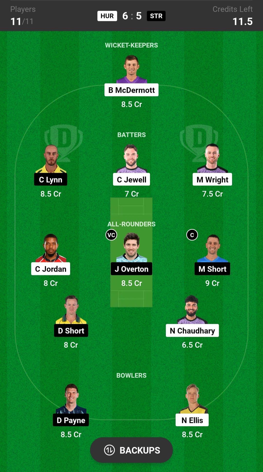 J Overton has performed too well with both the ball and bat in the recent matches. He loves performing against Hobart Hurricanes and even the pitch will help bowlers like him. He has earned 491 points in the last seven matches.
