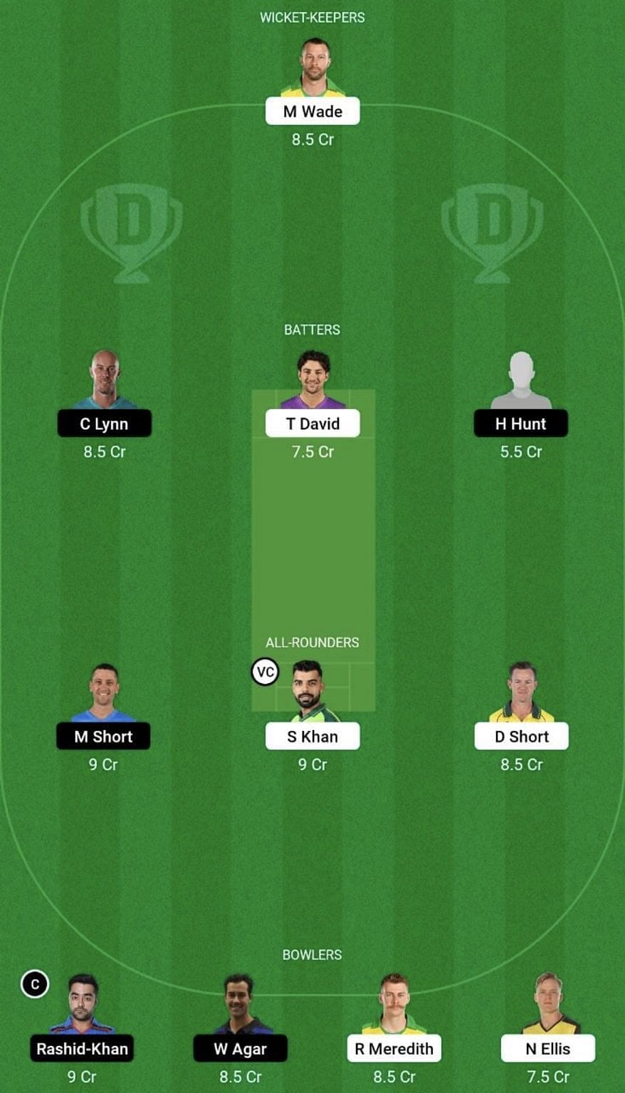 Bowlers: Rashid Khan (c), Wes Agar, Riley Meredith, Nathan Ellis