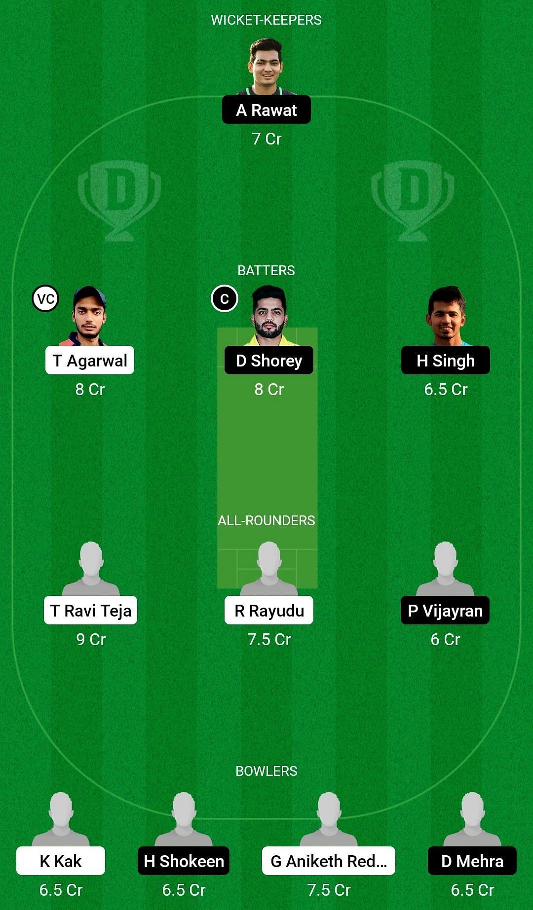 Batters: Tanmay Agarwal (vc), Dhruv Shorey (c), Himmat Singh