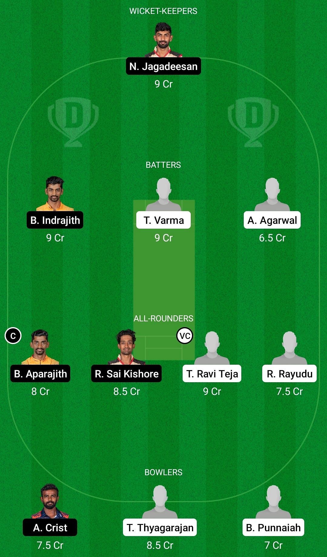 Both teams have some consistent performers who could be the key. The likes of N Jagadeesan, Baba Indrajith, Tilak Verma, Ravisrinivasan Sai Kishore, and Telukupalli Ravi Teja will be the ones to watch out for in the HYD vs TN game.