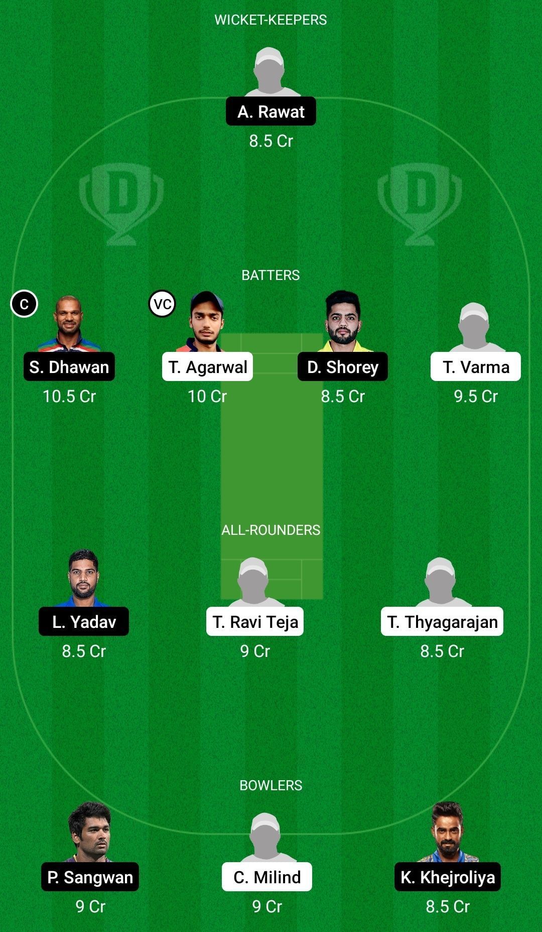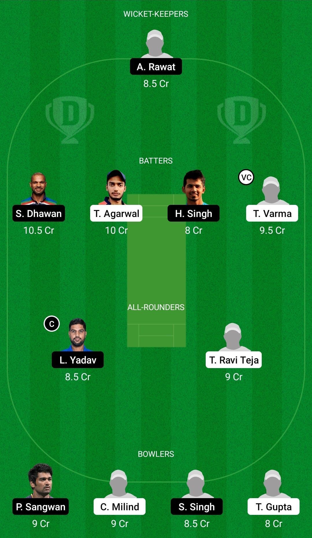 Captain: Shikhar Dhawan. Vice-captain: Tanmay Agarwal