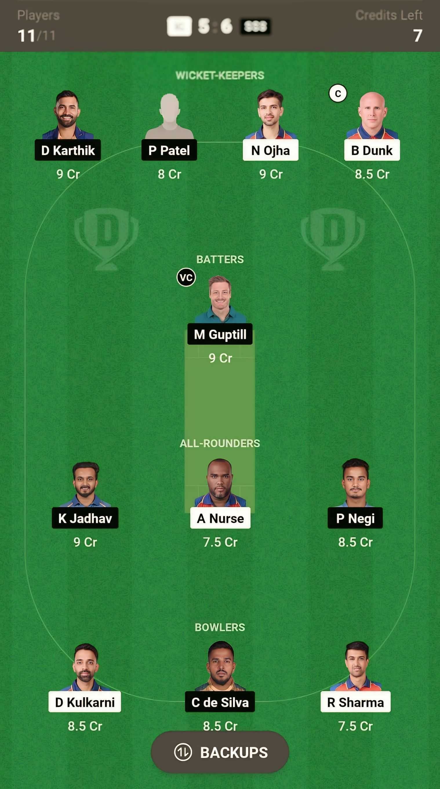 All-rounders: P Negi, K Jadhav, A Nurse