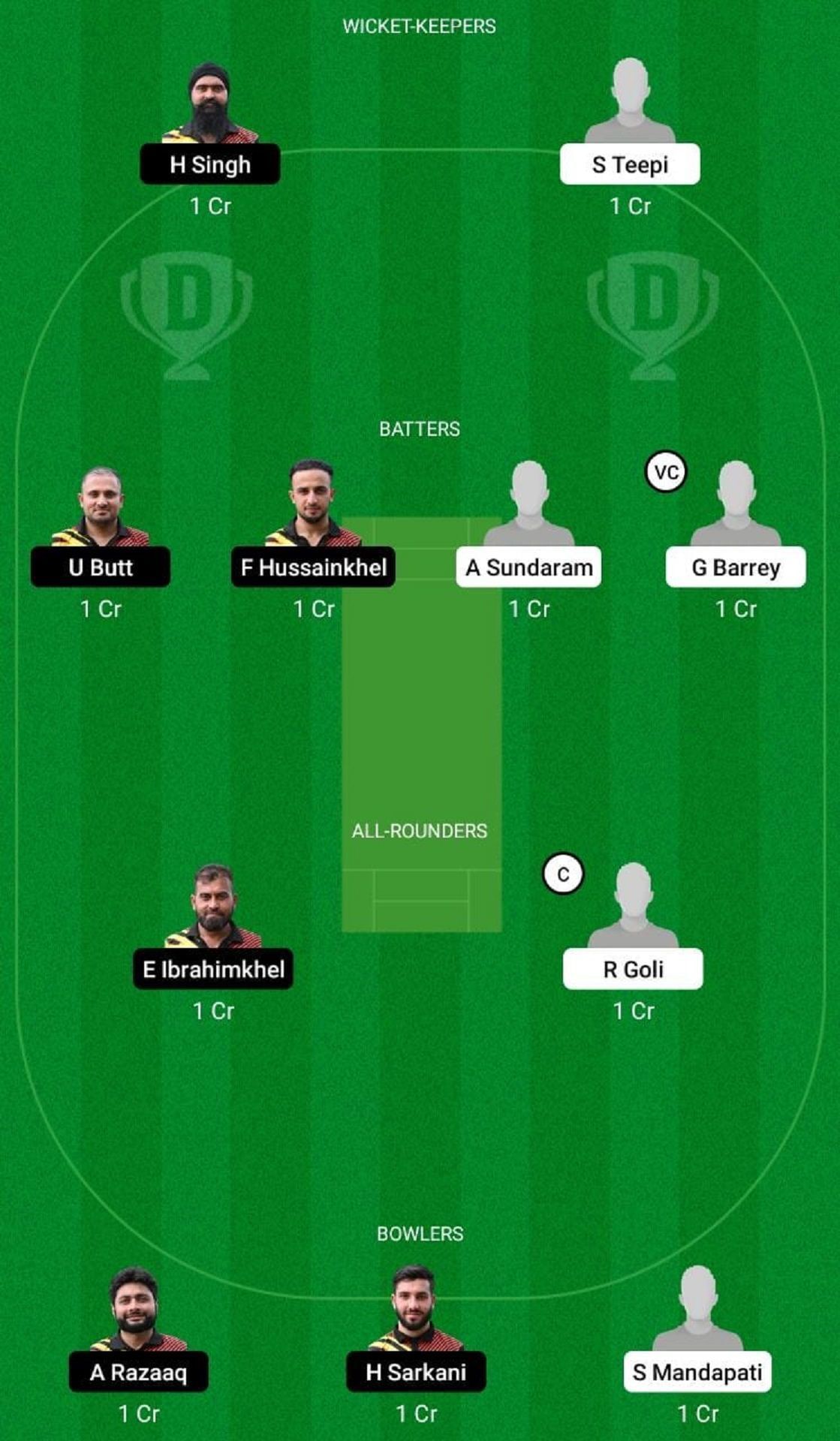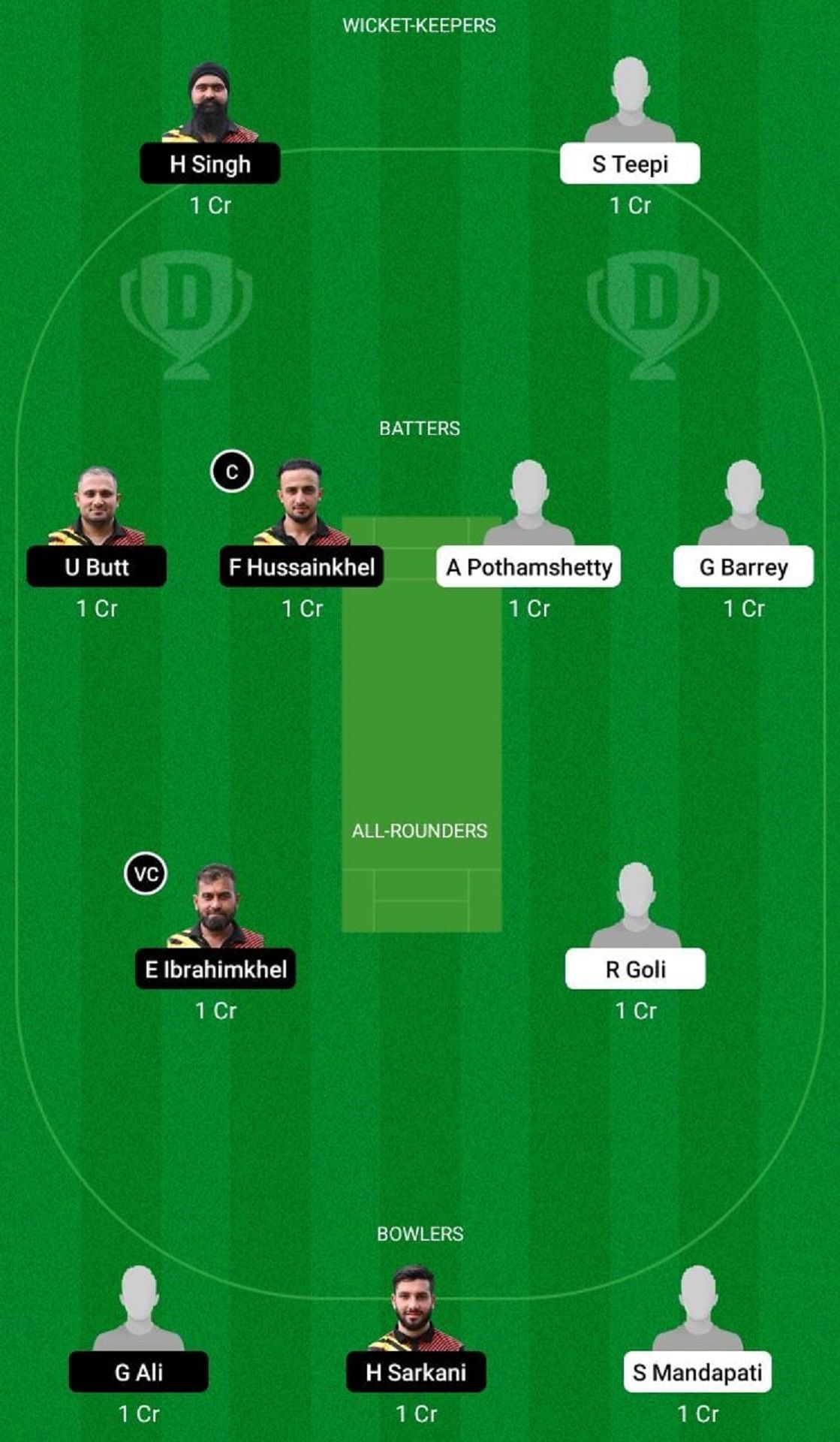 Batters: F Hussainkhel, G Barrey, U Butt, A Pothamshetty